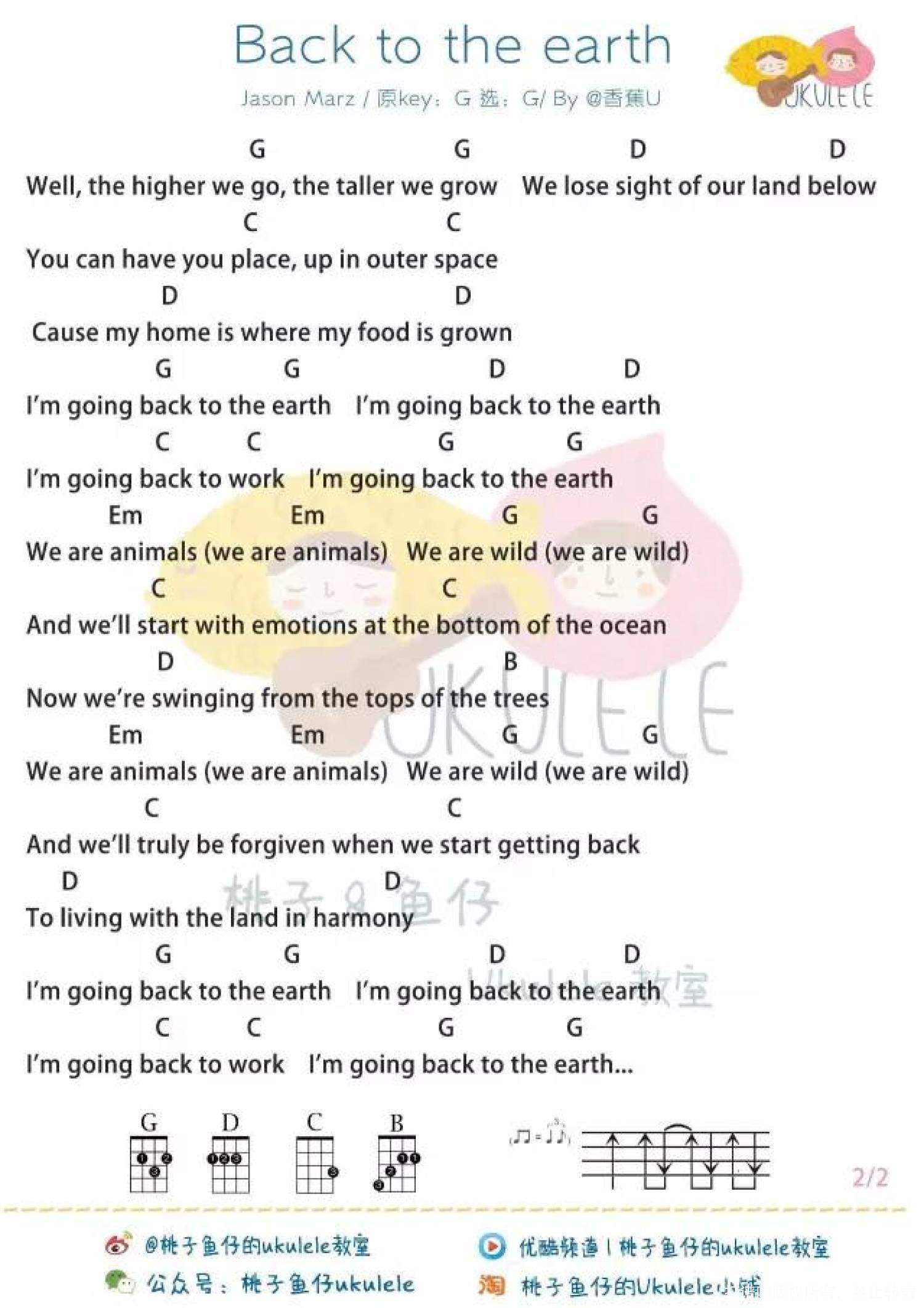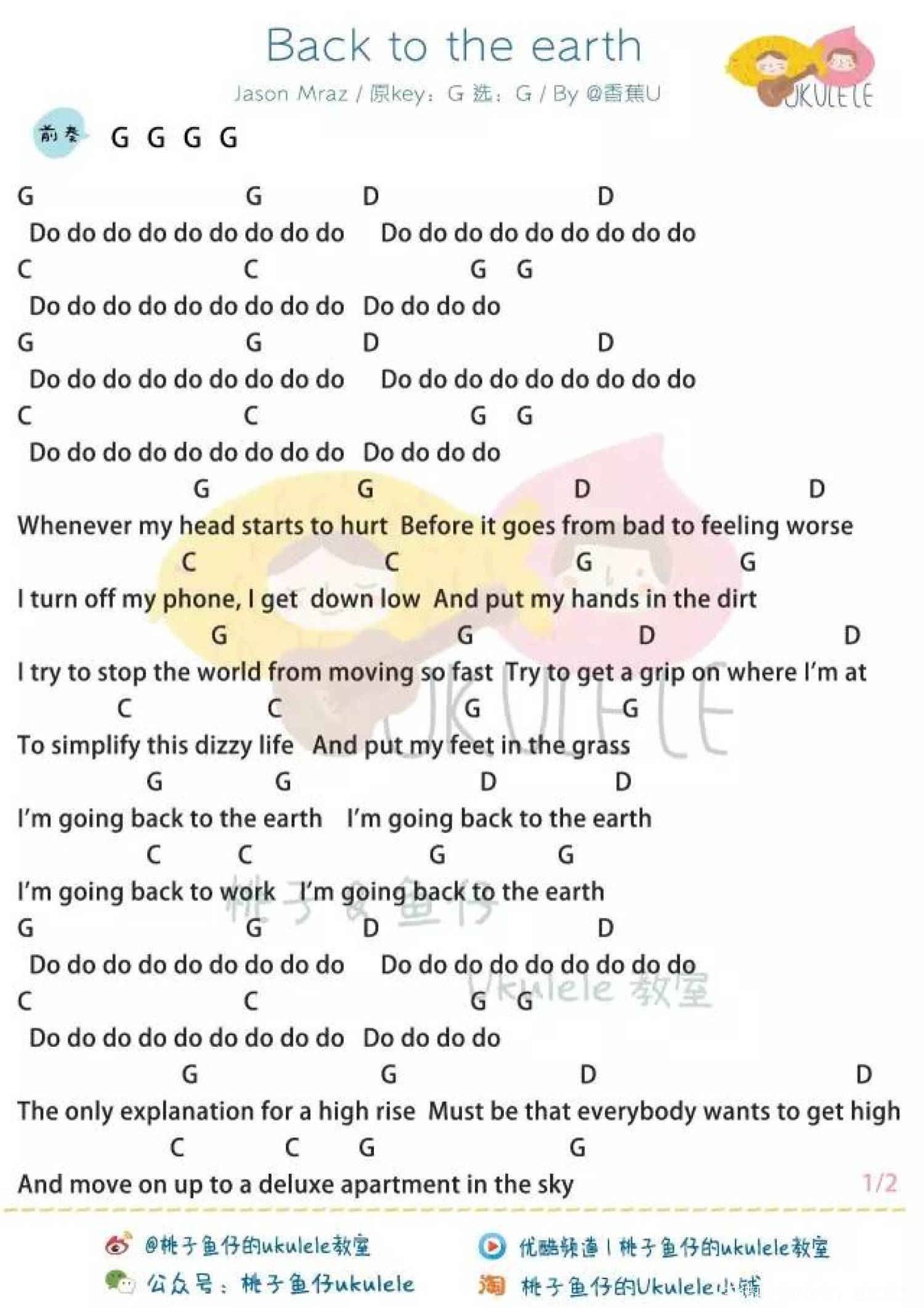 曲谱介绍: Jason Mraz《Back to the earth》_G调尤克里里谱