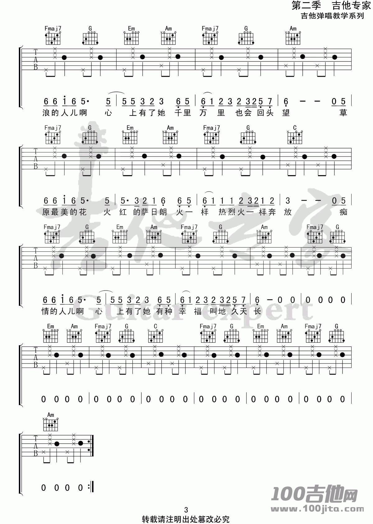 当前位置:琴谱网>吉他弹唱>火红的萨日朗