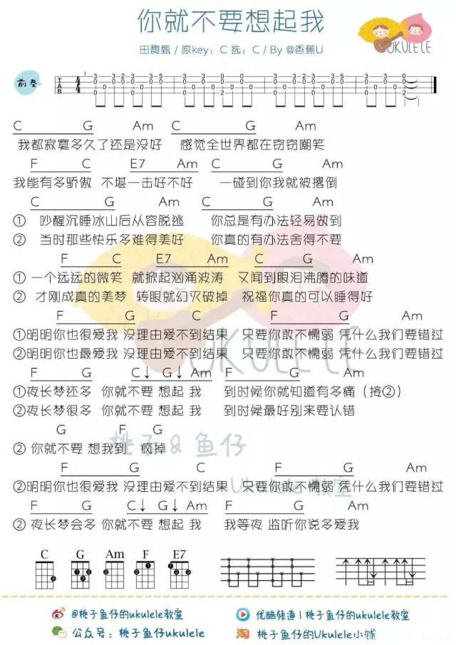 曲谱介绍: 田馥甄《你就不要想起我》_C调尤克里里谱