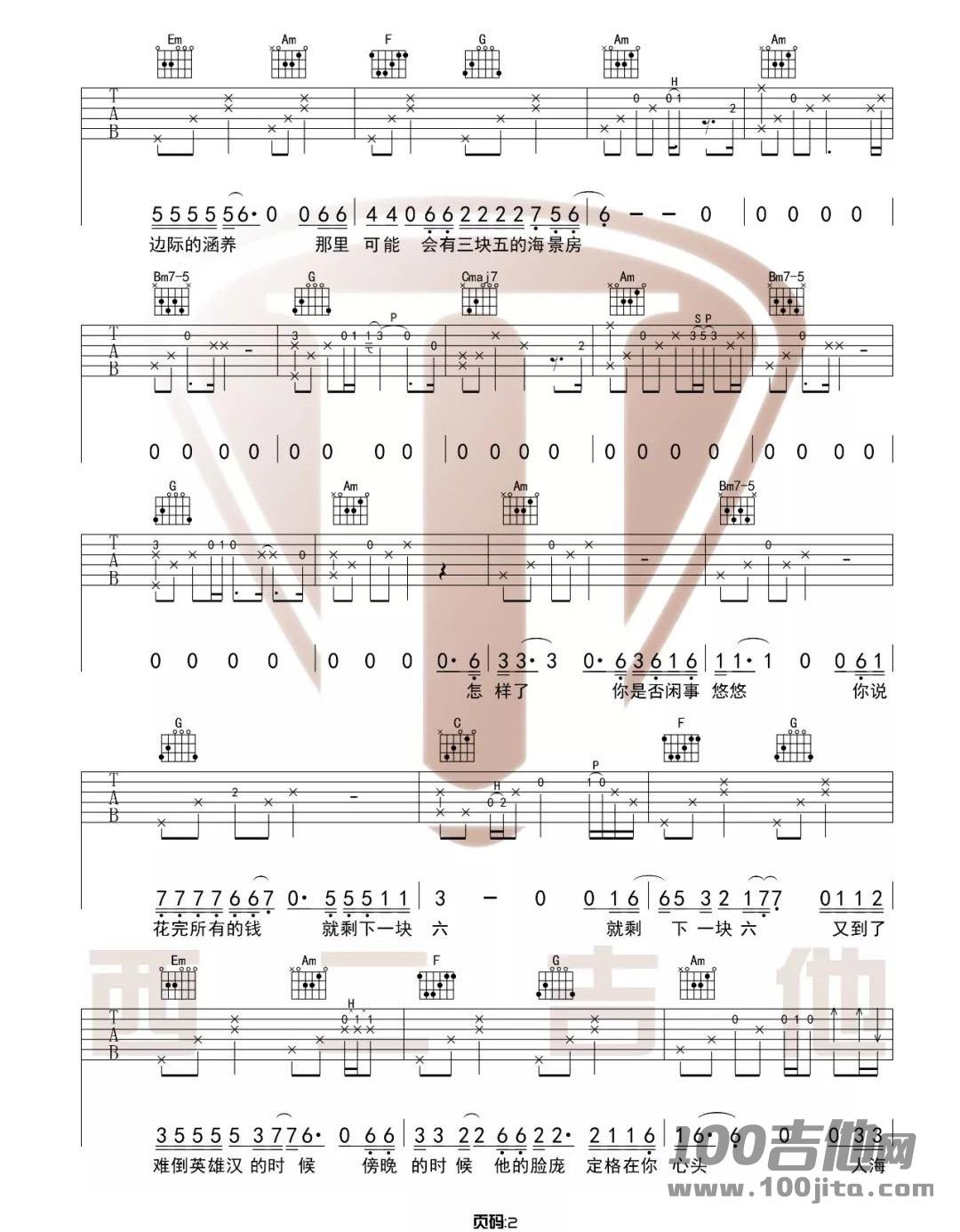 当前位置:琴谱网>吉他弹唱>四块五