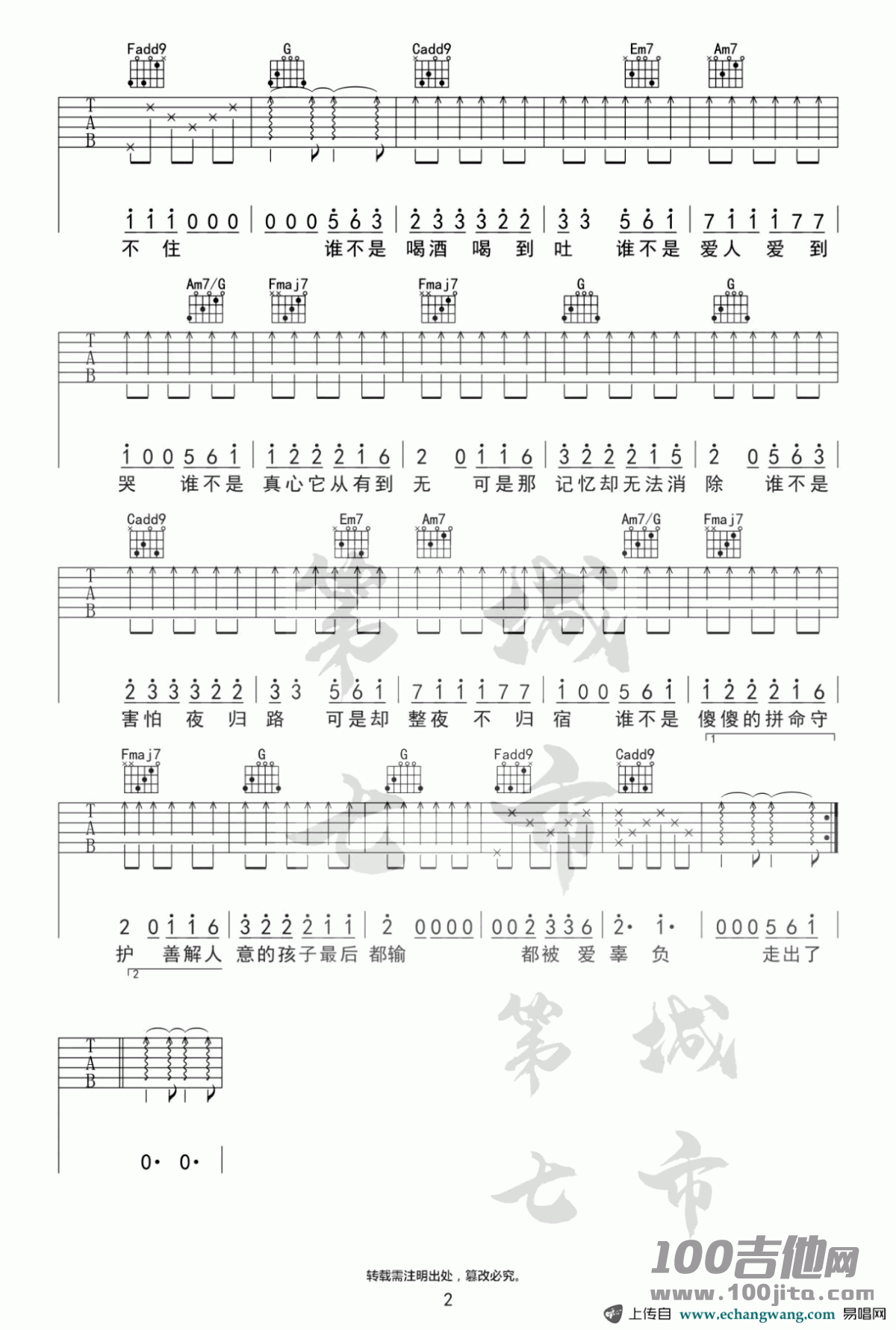 谁不是吉他谱 - 金池 - C调吉他弹唱谱
