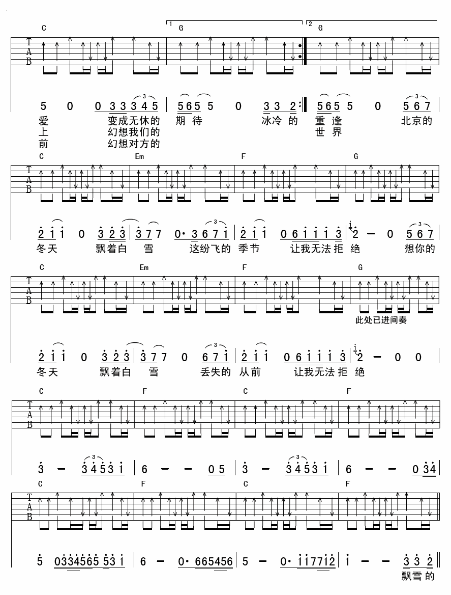 当前位置:琴谱网>吉他弹唱>北京的冬天