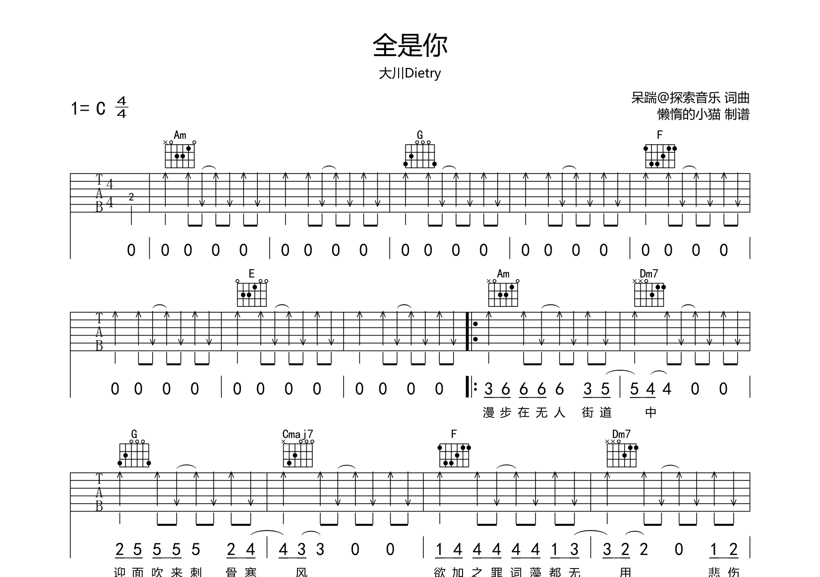 全是你吉他谱 - 大川Dietry - C调吉他弹唱谱