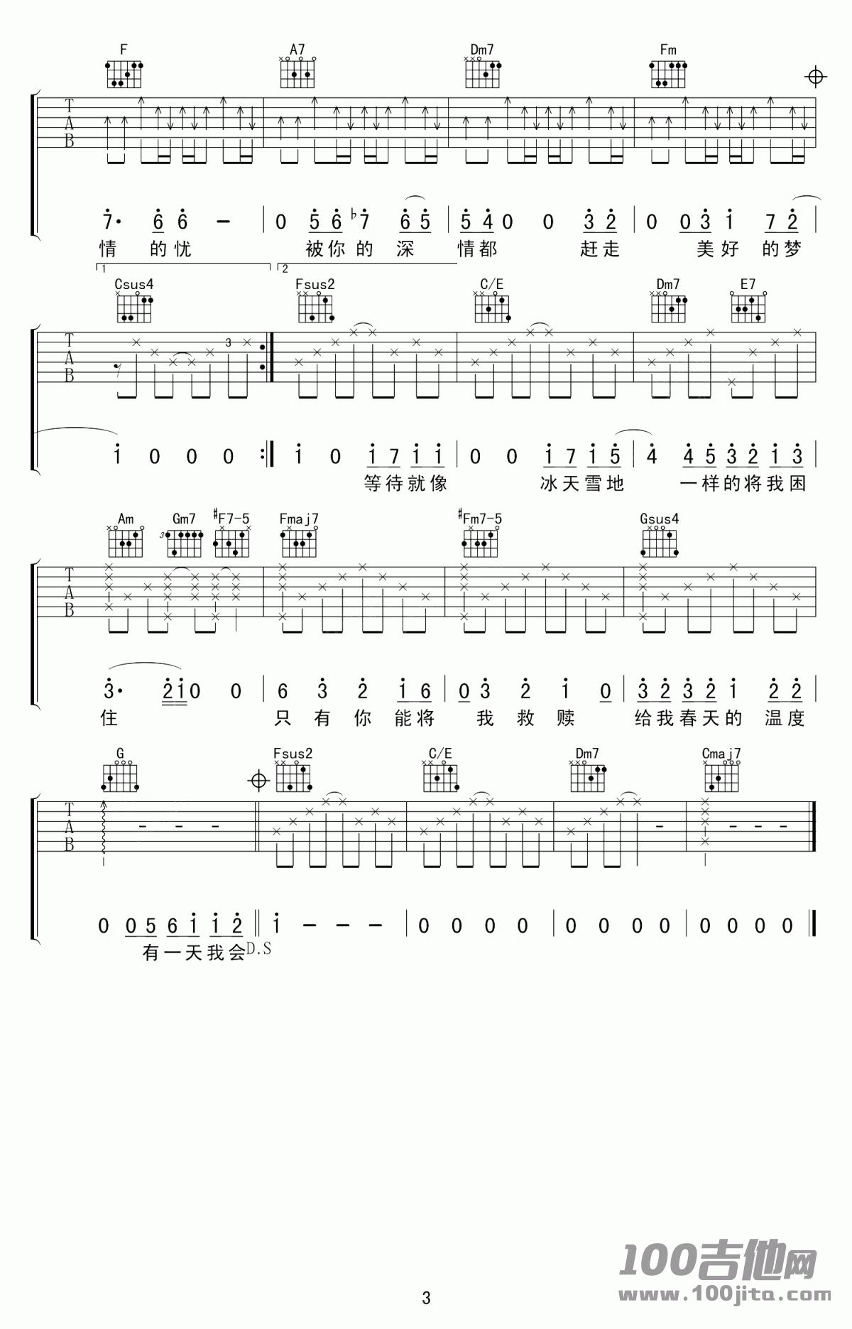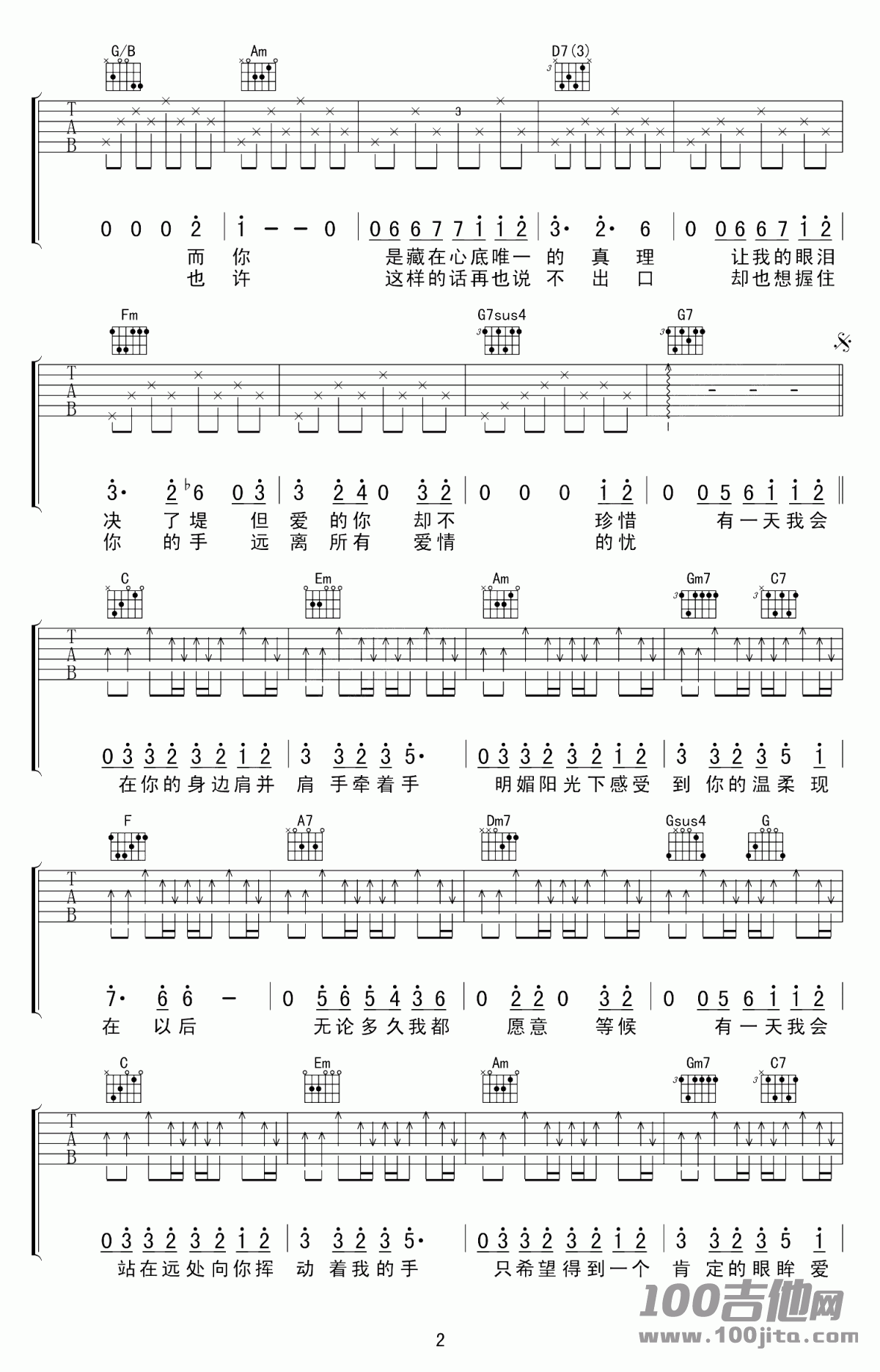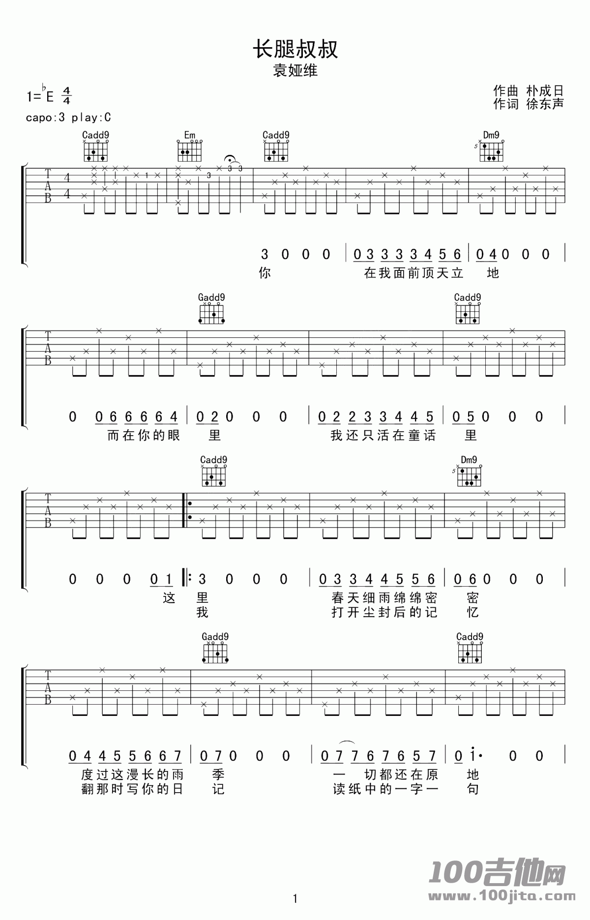 曲谱介绍: 袁娅维《长腿叔叔》吉他弹唱谱,采用C调指法编配,共有3张高清图谱。