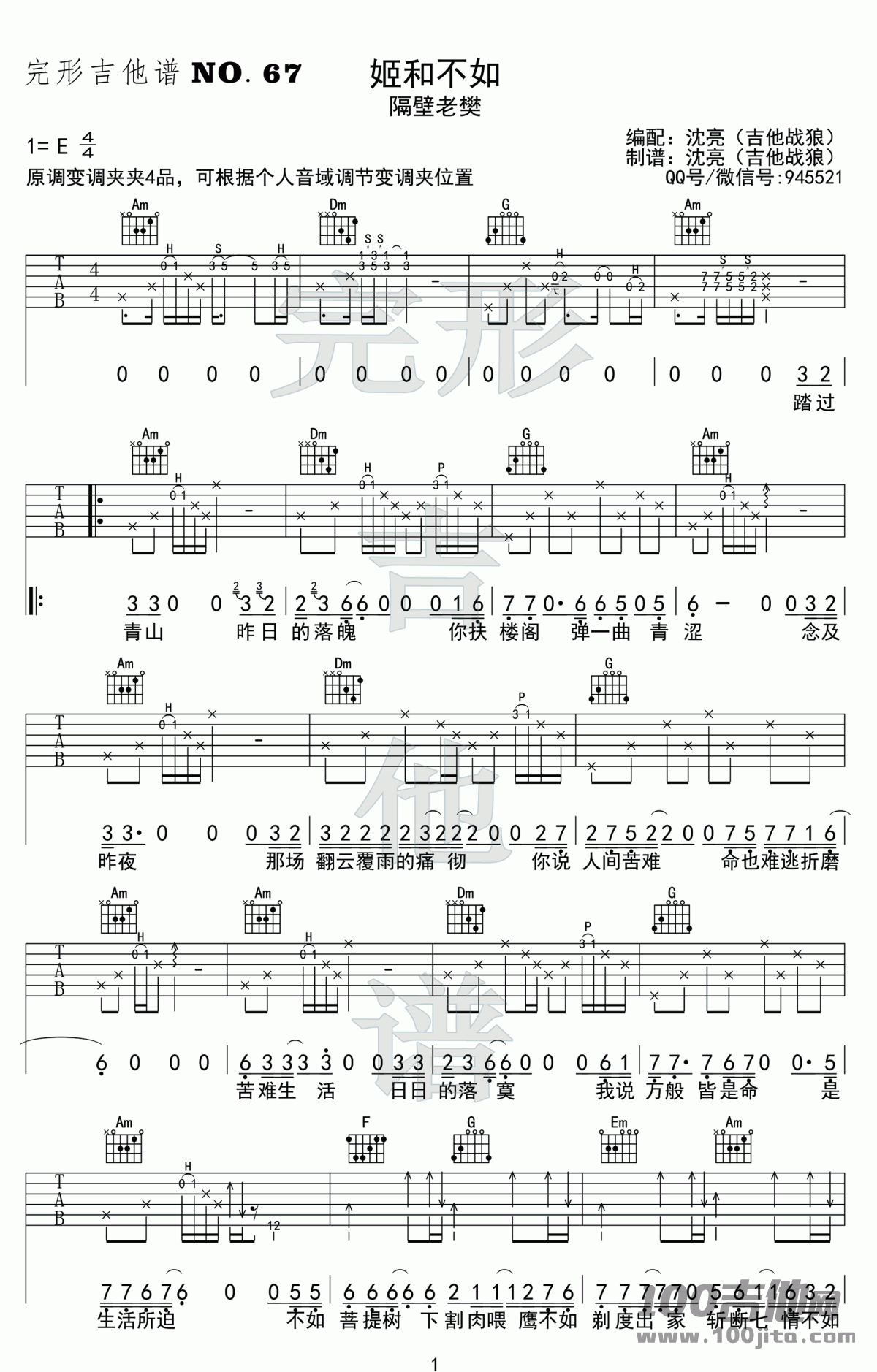 当前位置:琴谱网>吉他弹唱>姬和不如