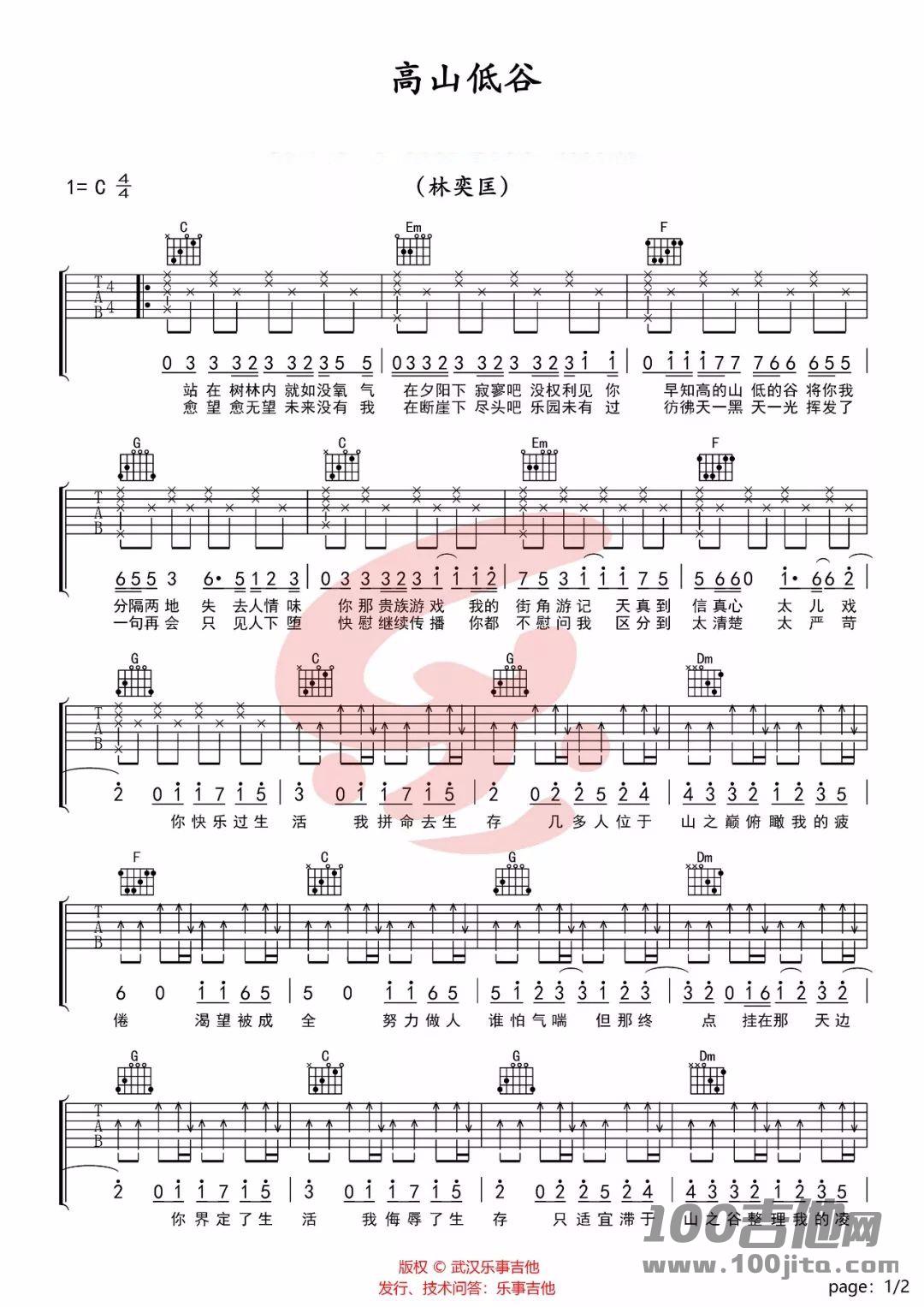 高山低谷吉他谱 - 林奕匡 - C调吉他弹唱谱
