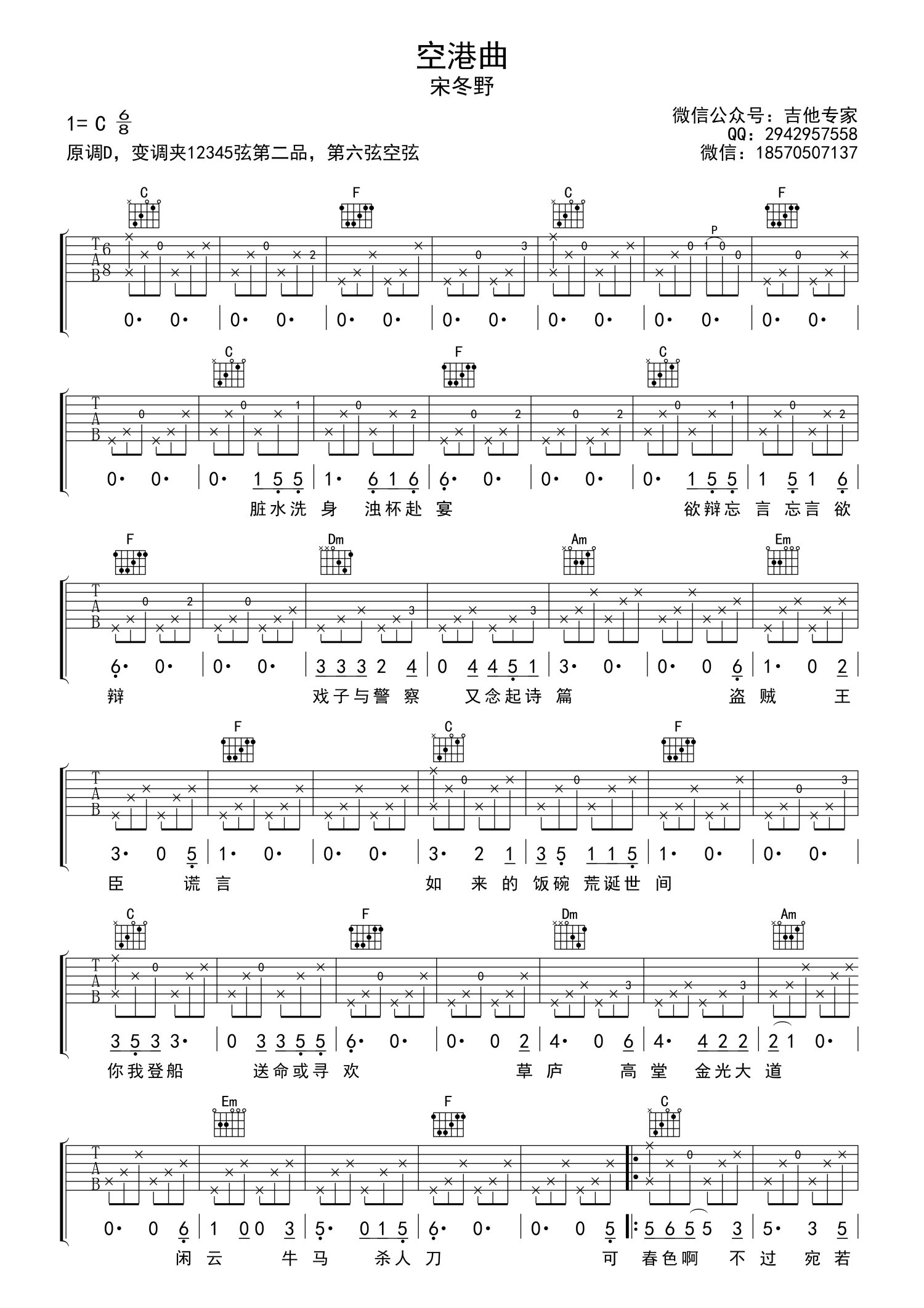 • 空港曲吉他谱 - 宋冬野 - C调吉他弹唱谱第1张
