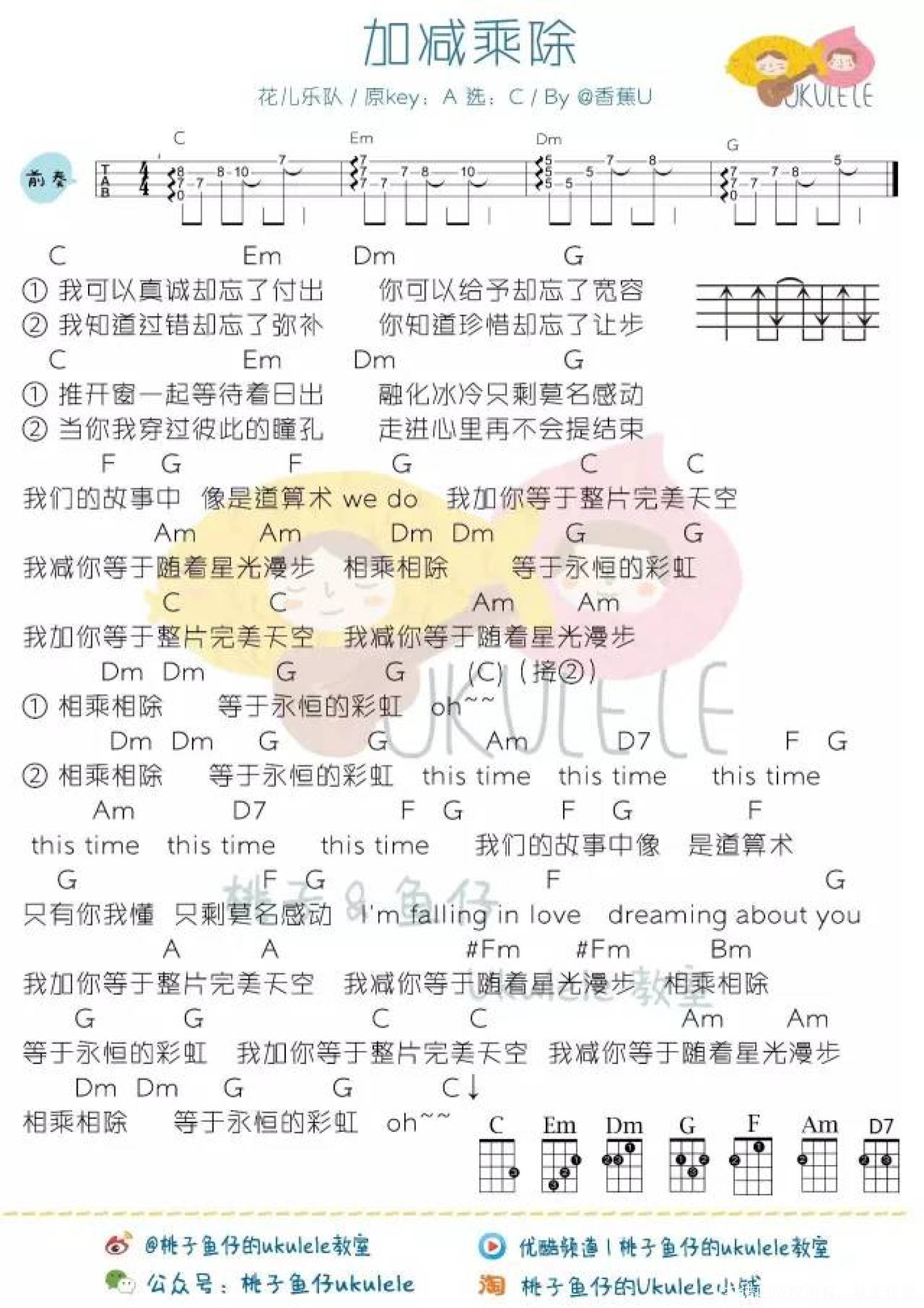 加减乘除尤克里里谱 - 花儿乐队