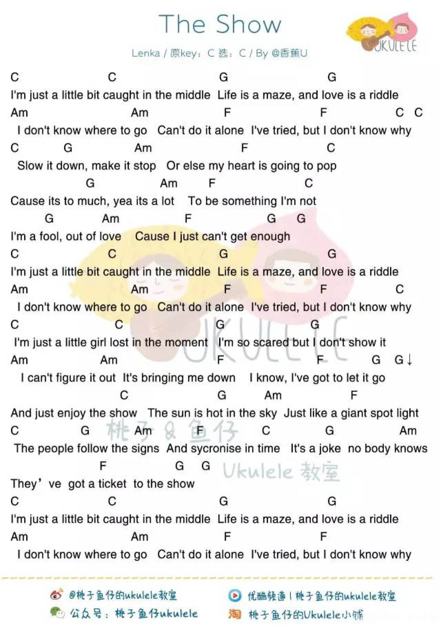 曲谱介绍: Lenka《The Show》_C调尤克里里谱