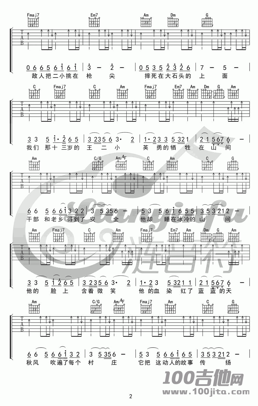 当前位置:琴谱网>吉他弹唱>歌唱二小放牛郎