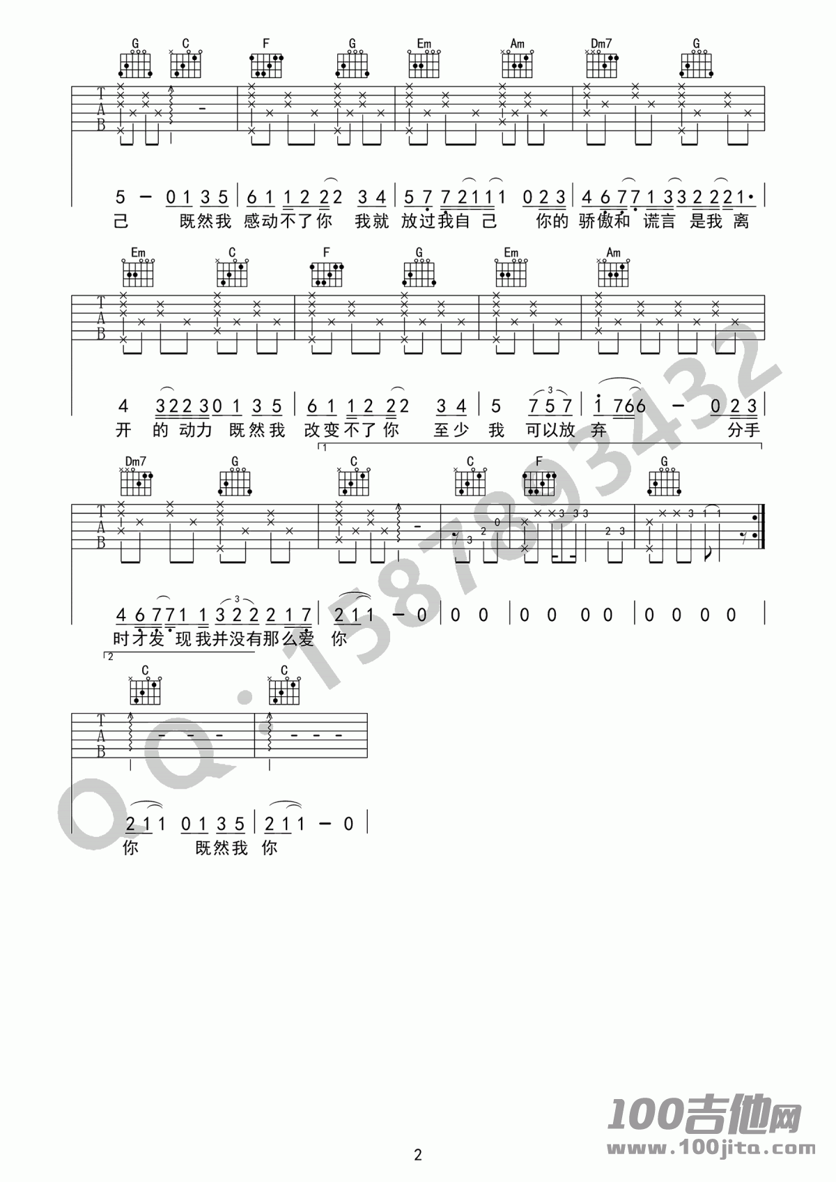 当前位置:琴谱网>吉他弹唱>放过自己