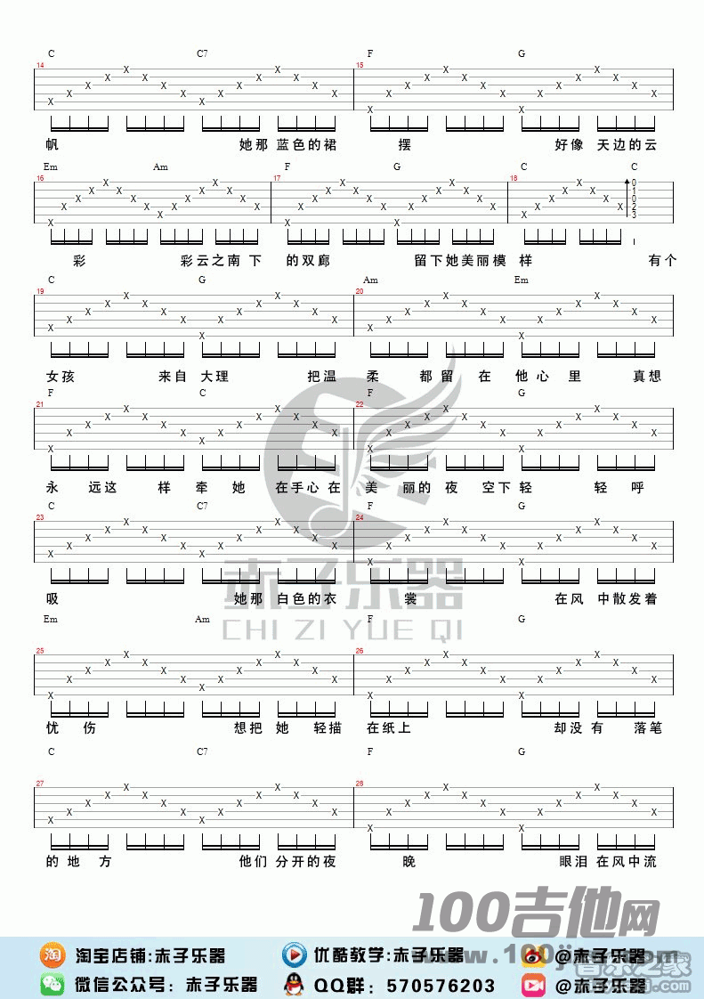 大理女孩吉他谱 - 罗森 - C调吉他弹唱谱
