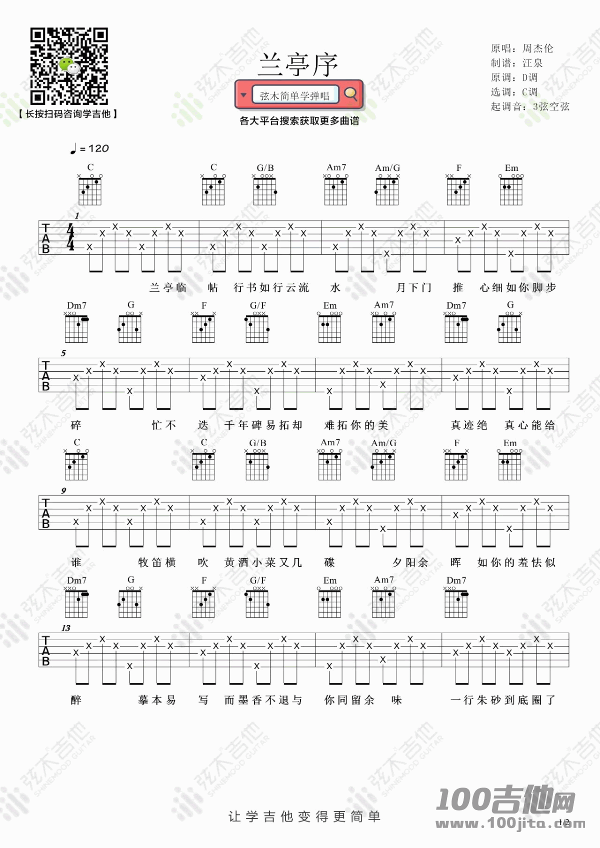 兰亭序吉他谱 - 周杰伦 - C调吉他弹唱谱