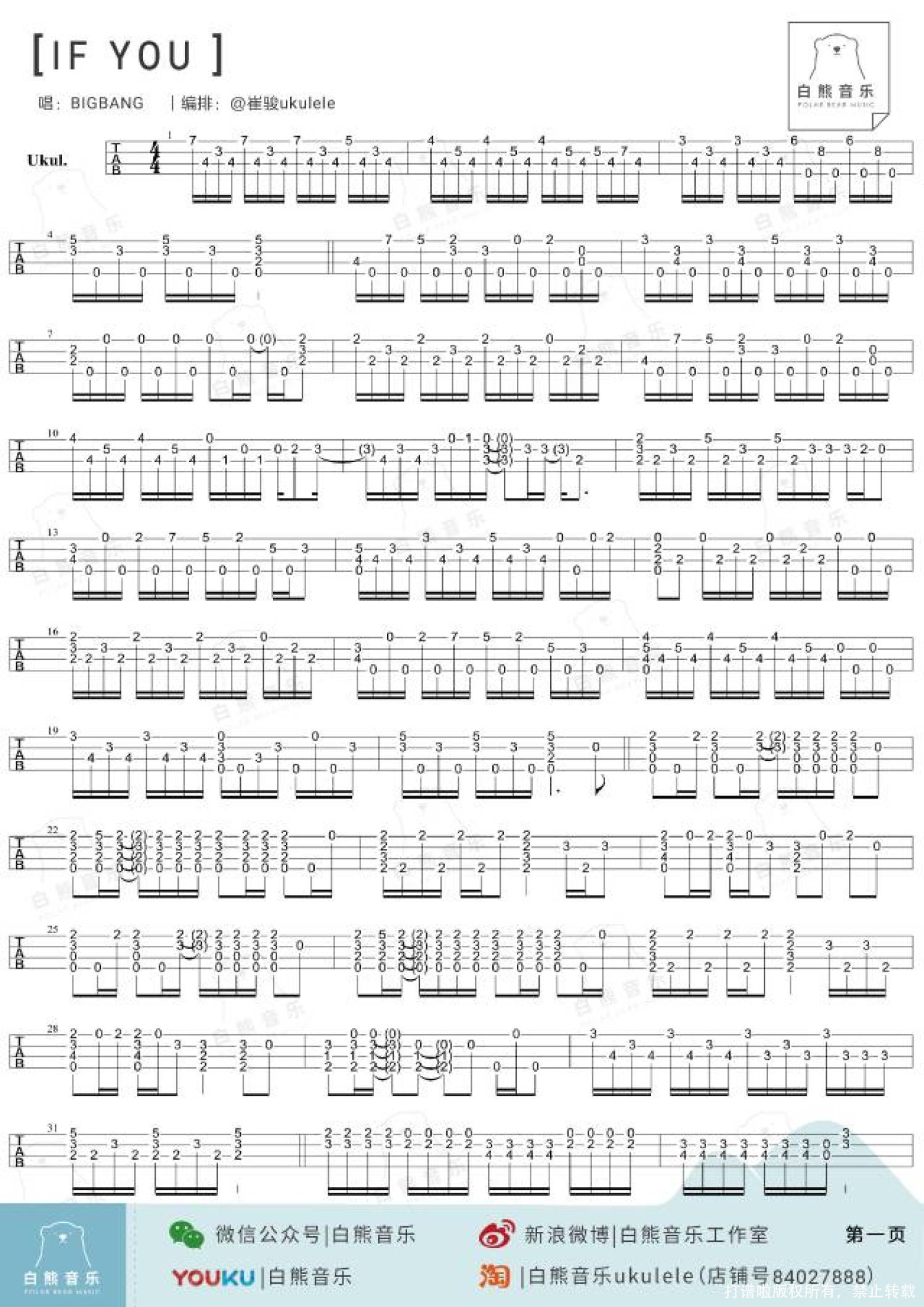 曲谱介绍: BIGBANG《IF YOU》_尤克里里谱