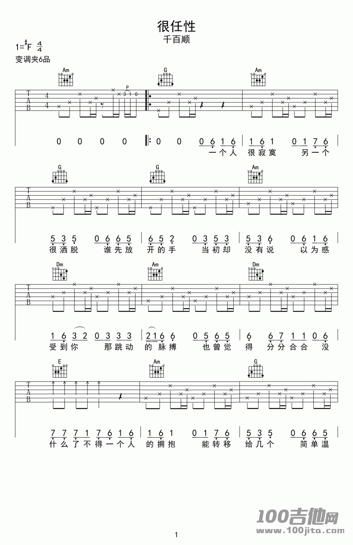 当前位置:琴谱网>吉他弹唱>很任性