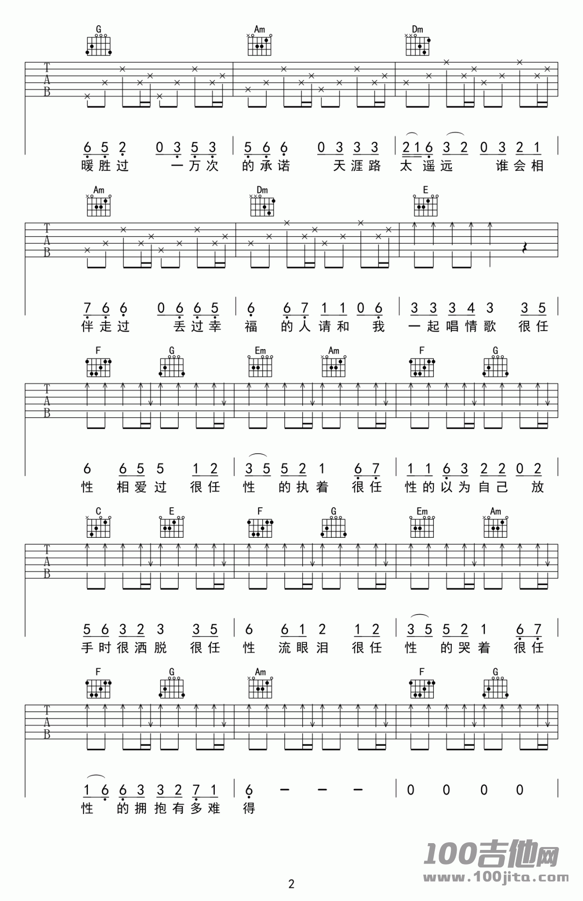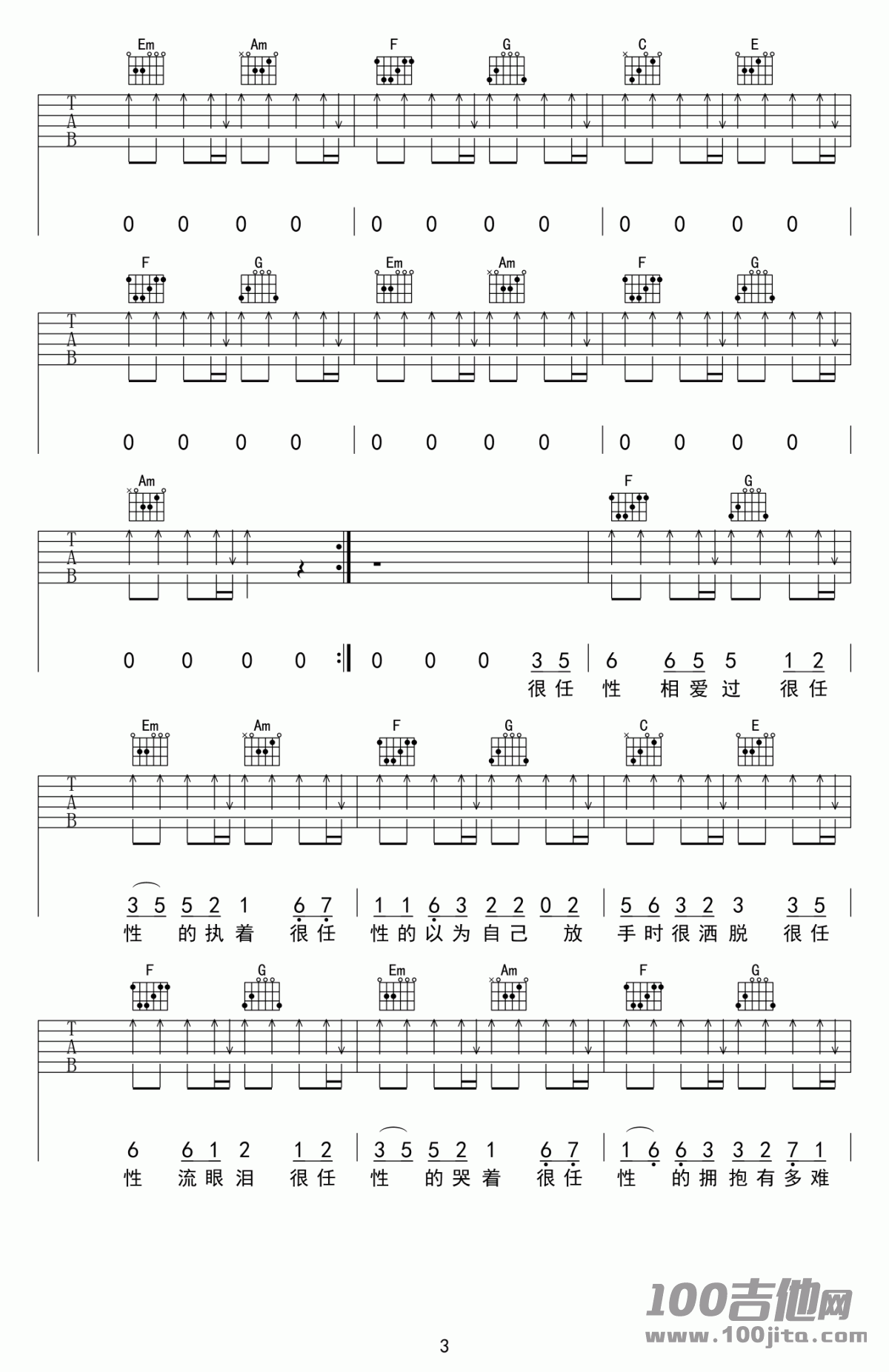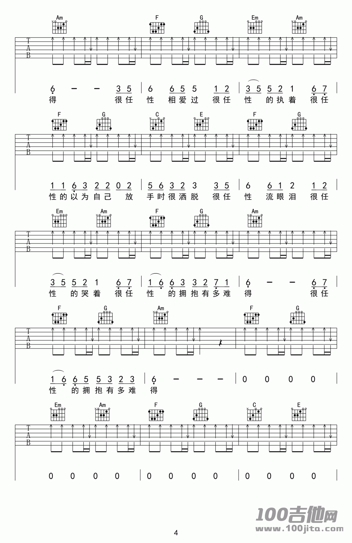 很任性吉他谱 - C调吉他弹唱谱
