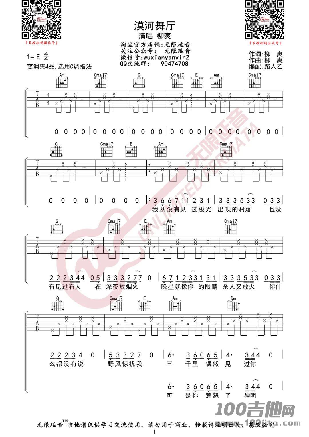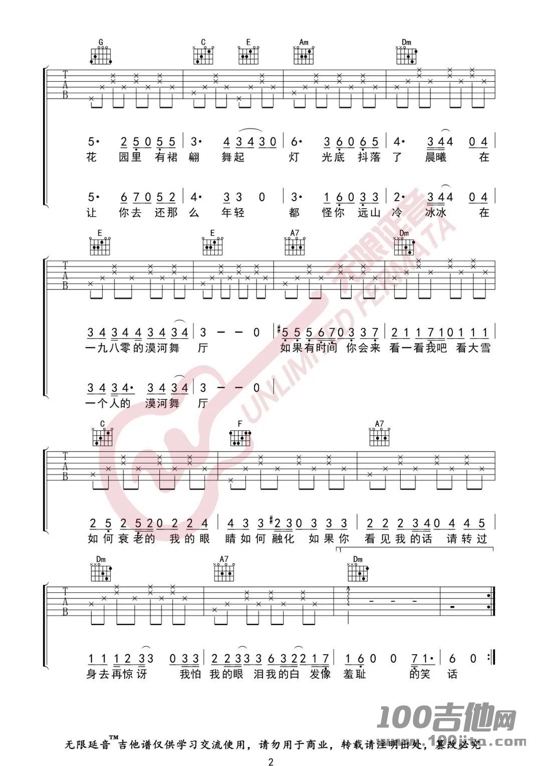 曲谱介绍: 柳爽《漠河舞厅》吉他弹唱谱,采用C调指法编配,共有3张高清图谱。