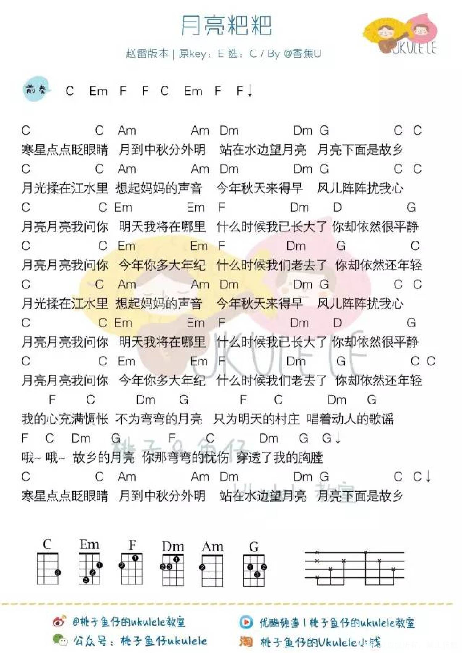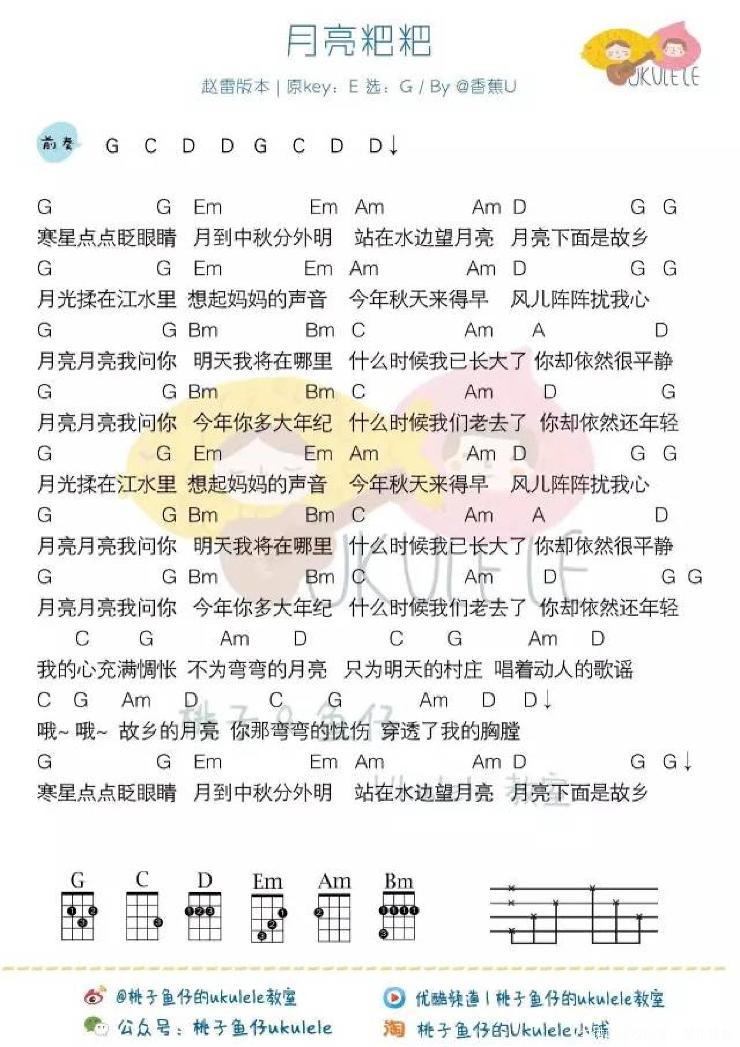月亮粑粑尤克里里谱 - 赵雷
