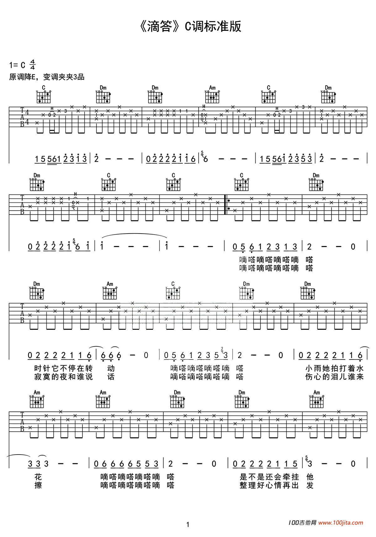 当前位置:琴谱网>吉他弹唱>滴答