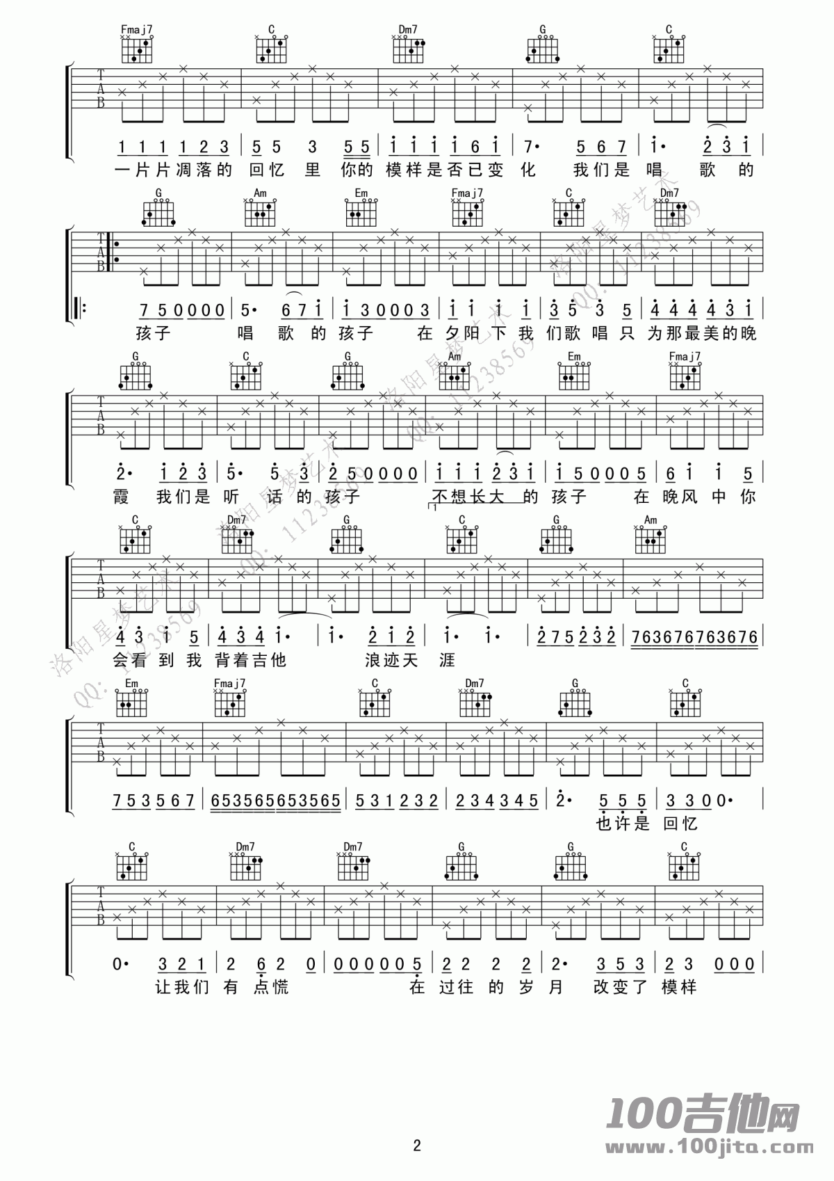 当前位置:琴谱网>吉他弹唱>唱歌的孩子