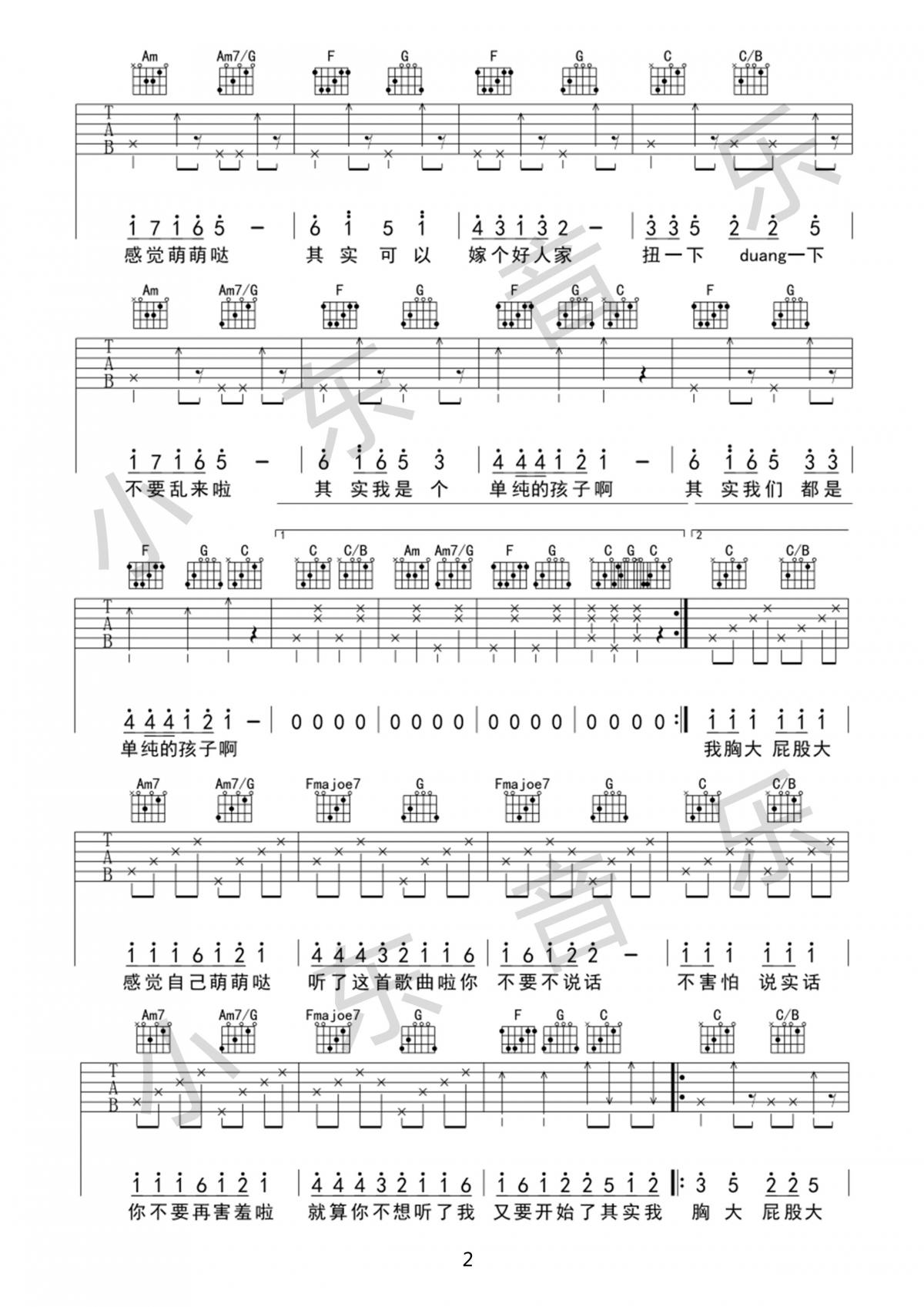 曲谱介绍: 屁股大吉他谱是根据歌手苏仨的一首幽默诙谐的歌曲编配的吉他谱。谱子采用C调编配。这首歌曲歌词写的非常的诙谐“我胸大屁股大感觉自己萌萌哒”。旋律也很欢快。用自嘲的口吻来表达自己的可爱和对爱情的期待。确实是比较另类的歌曲。喜欢苏仨这种类型歌曲的朋友记得弹唱试试哦。