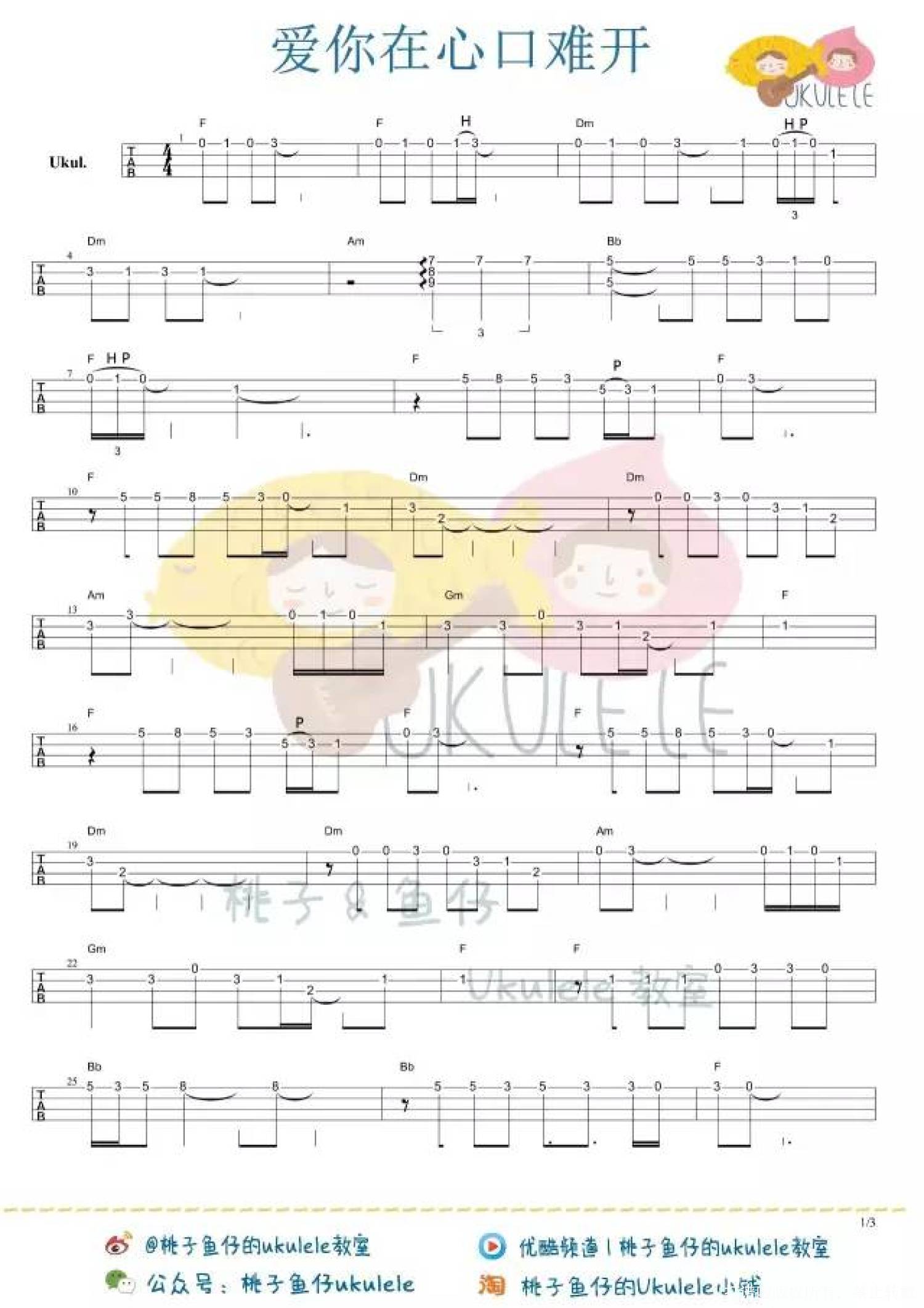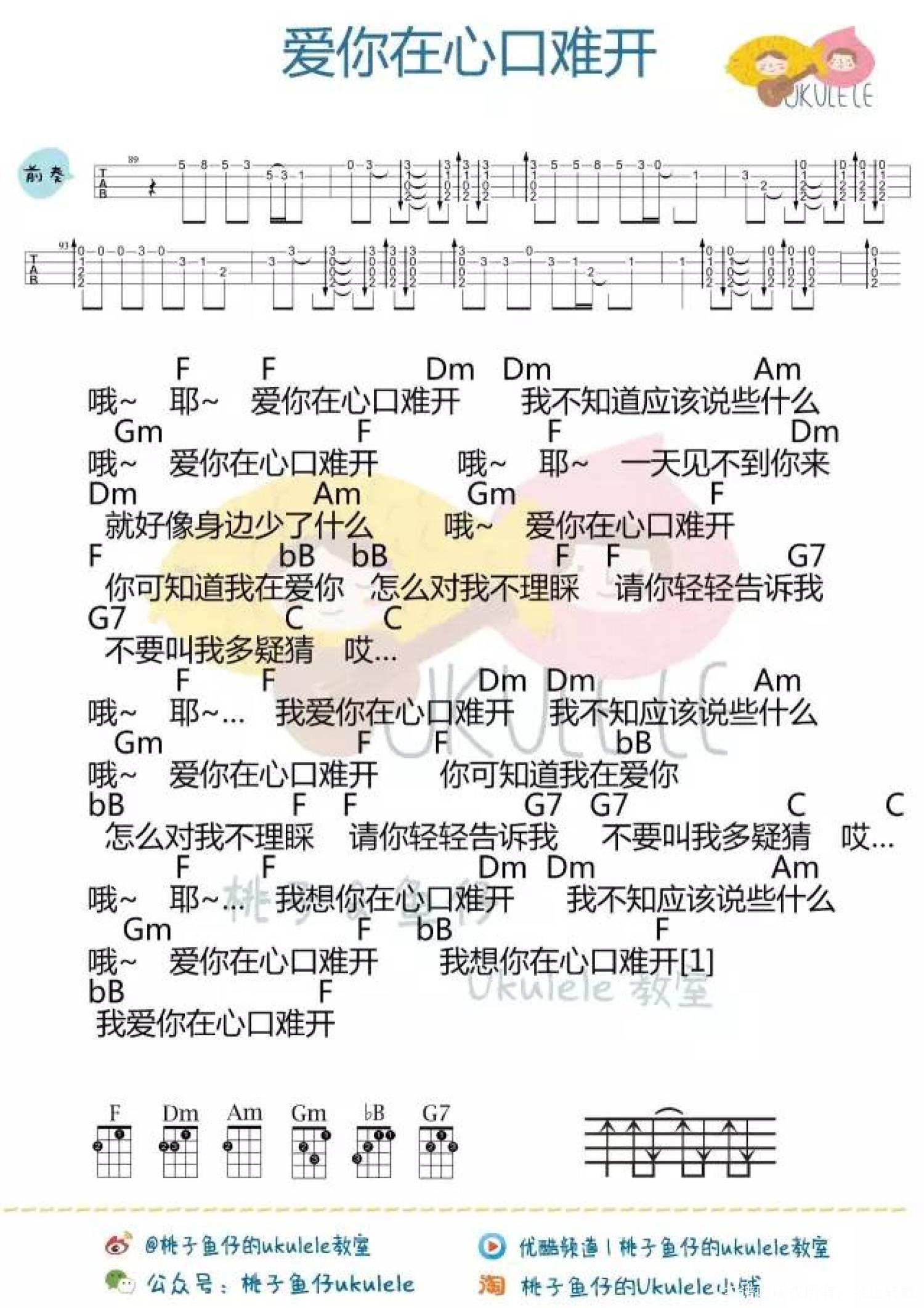 爱你在心口难开尤克里里谱