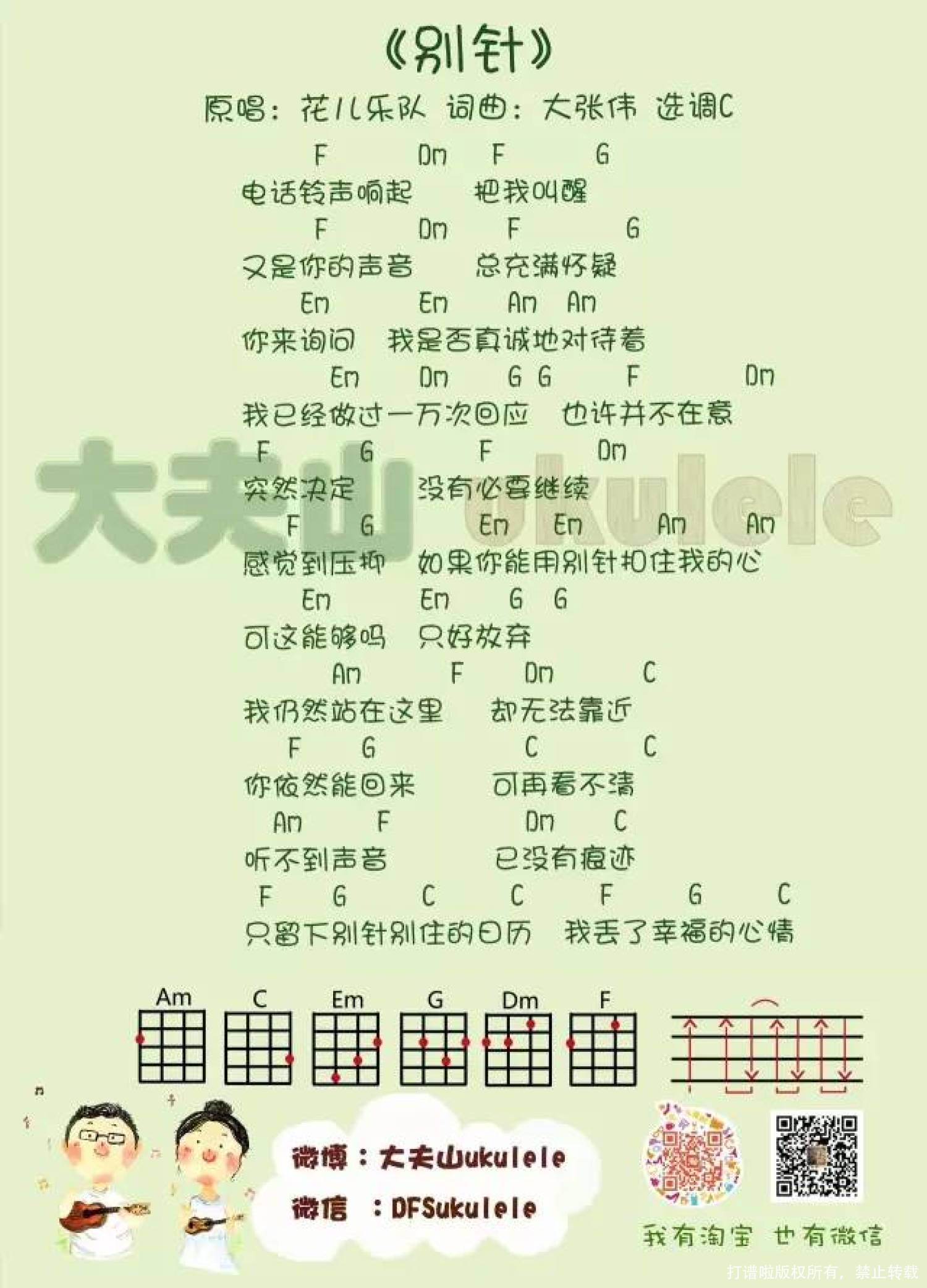 曲谱介绍: 花儿乐队《别针》_C调尤克里里谱