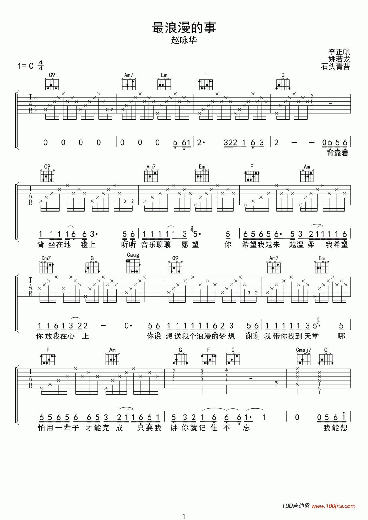 当前位置:琴谱网>吉他弹唱>最浪漫的事