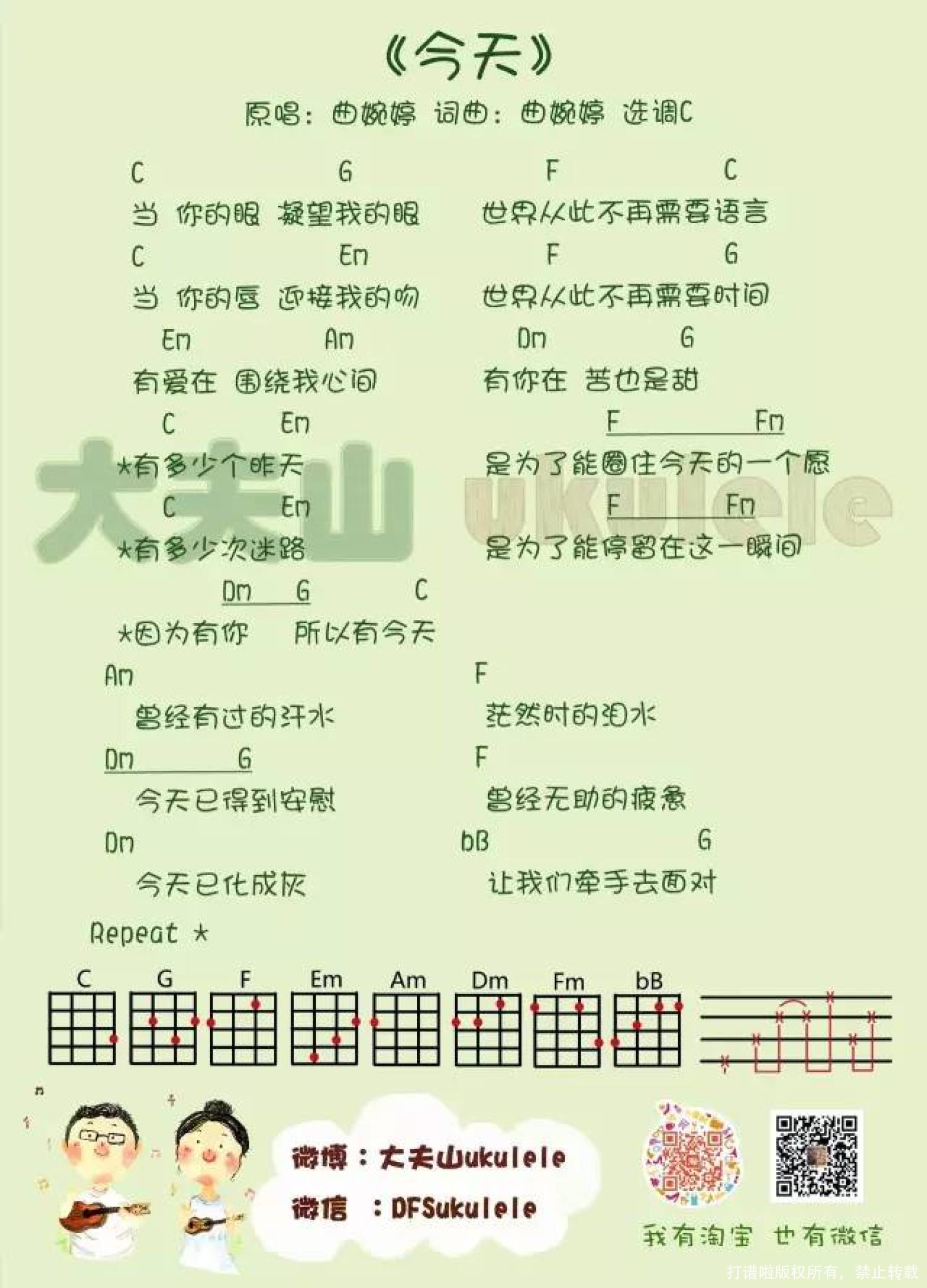 曲谱介绍: 曲婉婷《今天》_C调尤克里里谱