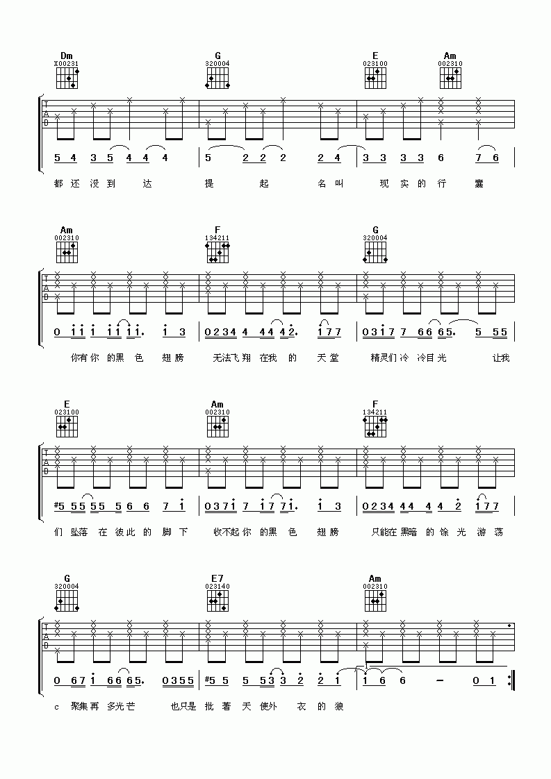 当前位置:琴谱网>吉他弹唱>黑色翅膀