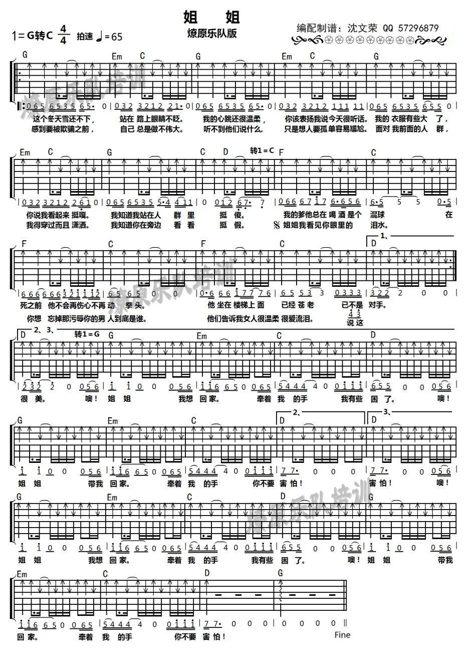 曲谱介绍: 姐姐吉他谱是根据歌手张楚的一首经典歌曲编配的吉他谱。谱子采用C调编配。非常有深情的歌曲,歌曲用摇滚的方式抒发了这种温情。听起来冲击感非常强。张楚出色的唱功也让歌曲加分不少。喜欢的朋友试试哦。琴谱网编辑整理。