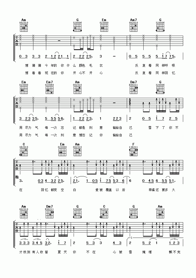 夏雪吉他谱 - 何洁 - C调吉他弹唱谱