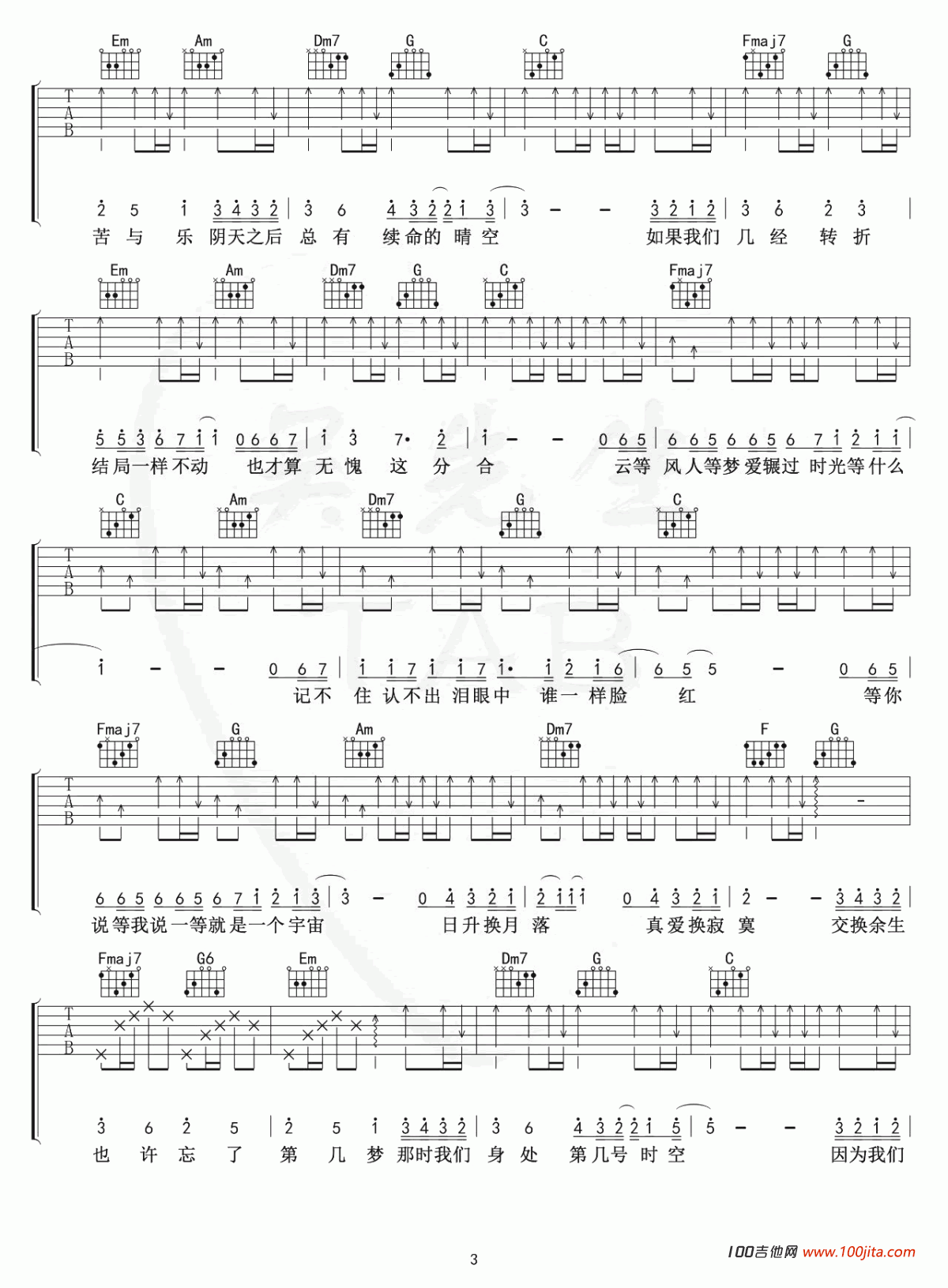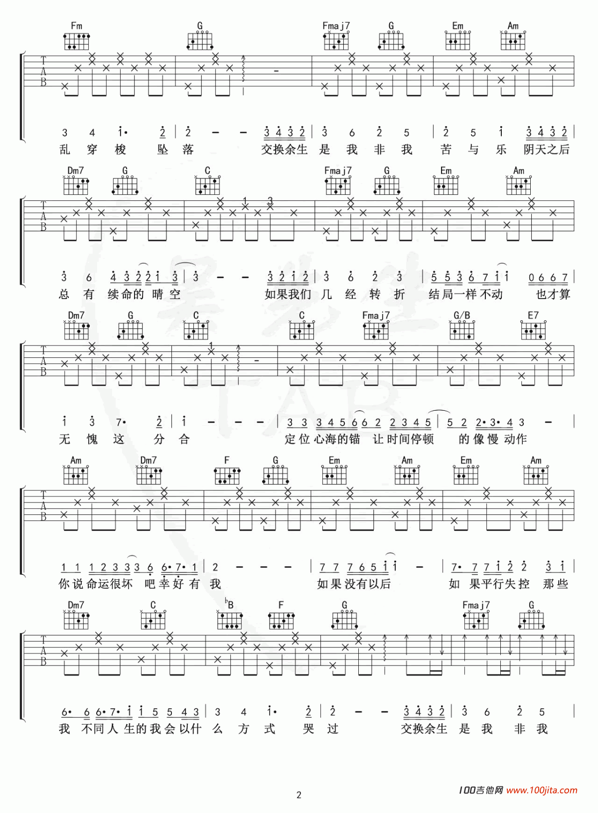 当前位置:琴谱网>吉他弹唱>交换余生