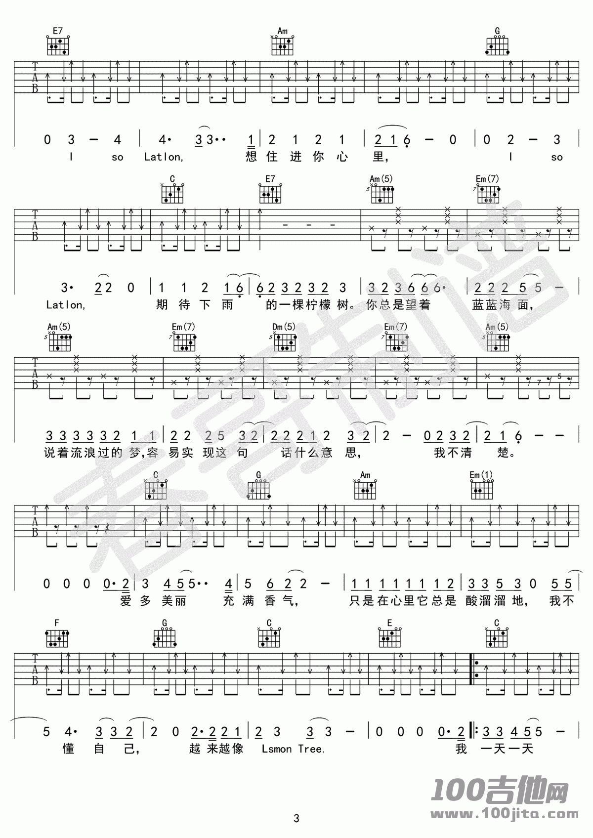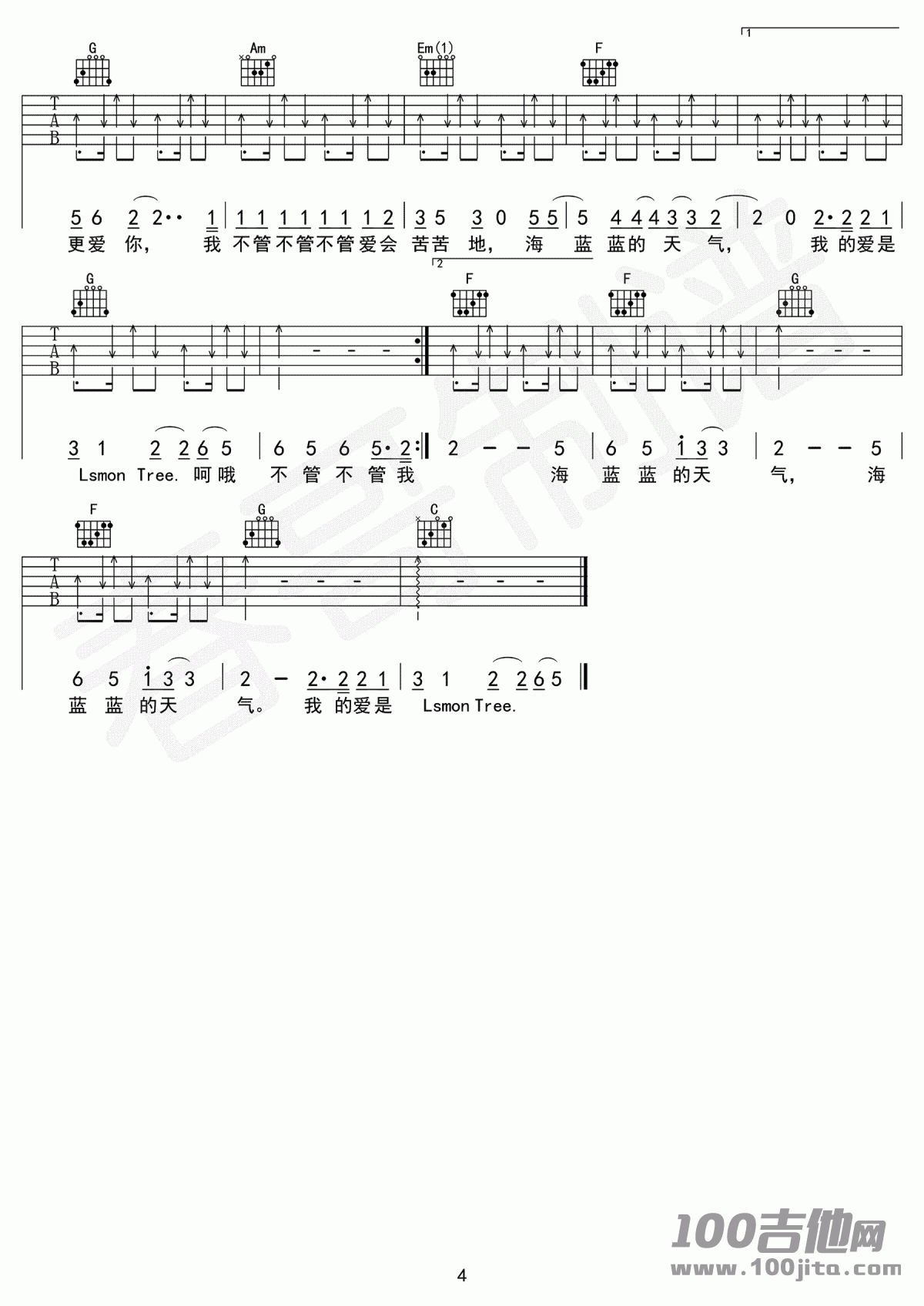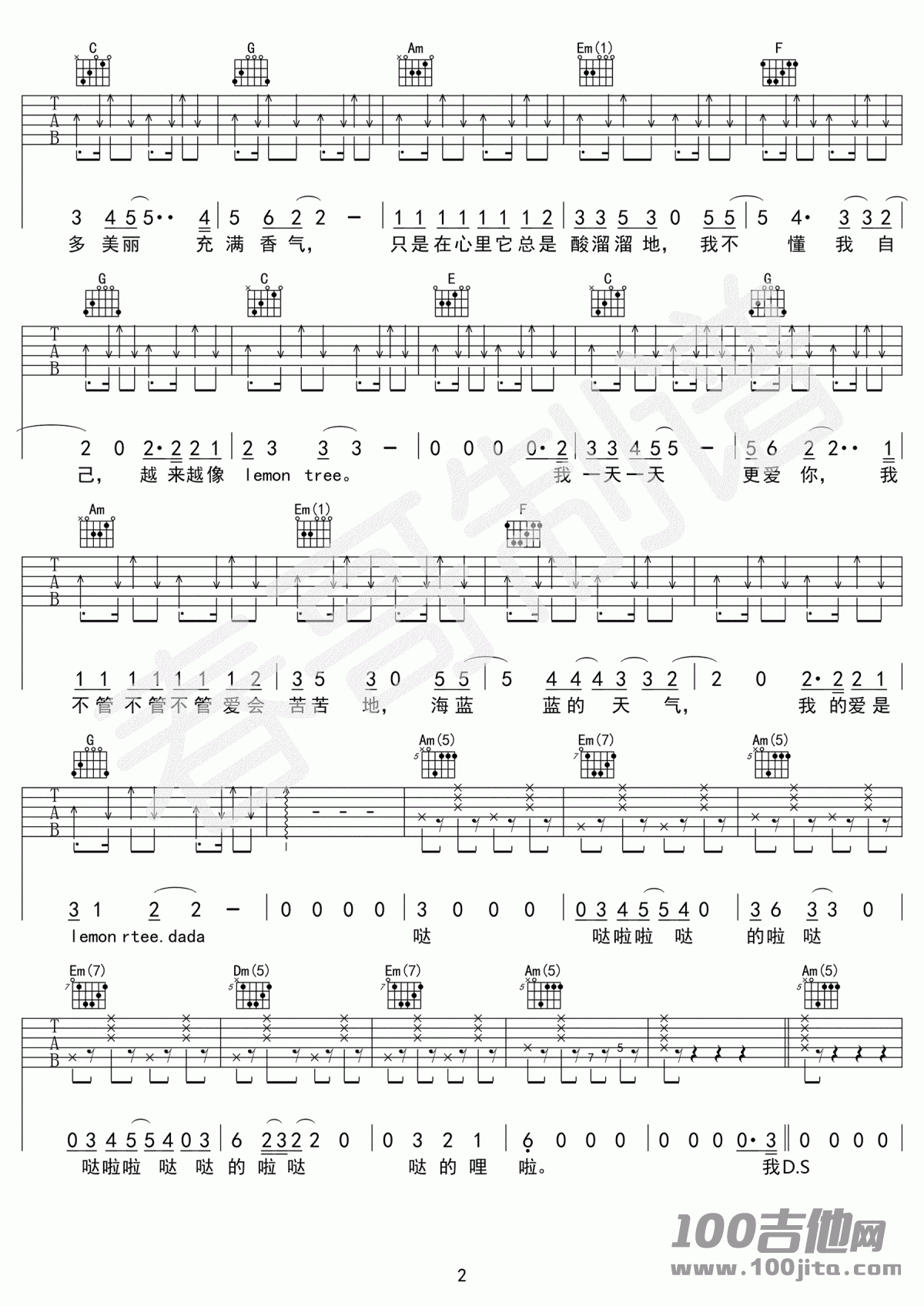 当前位置:琴谱网>吉他弹唱>Lemon Tree