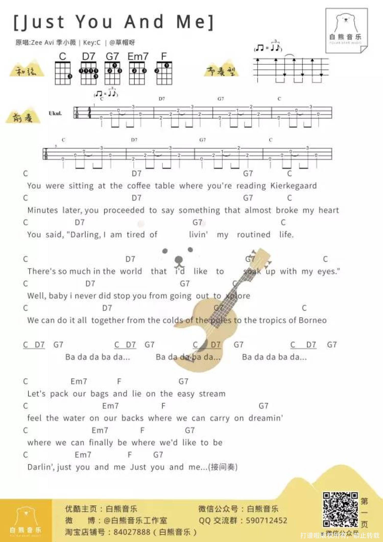 曲谱介绍: Zee Avi《Just You And Me》_C调尤克里里谱
