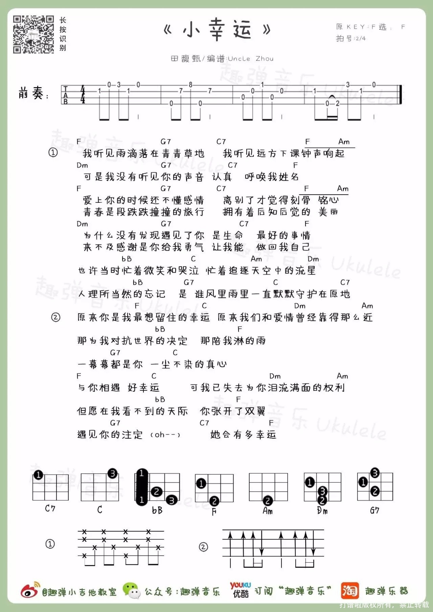 曲谱介绍: 田馥甄《小幸运》_F调尤克里里谱