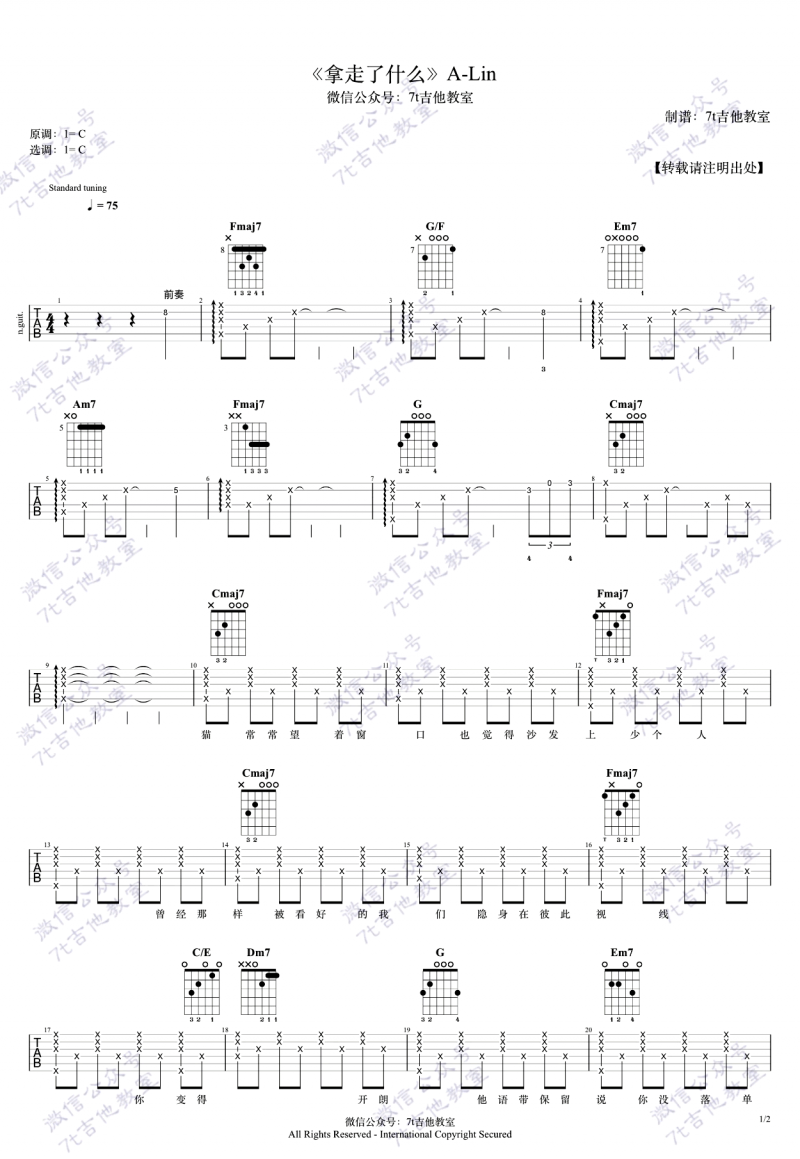 当前位置:琴谱网>吉他弹唱>拿走了什么