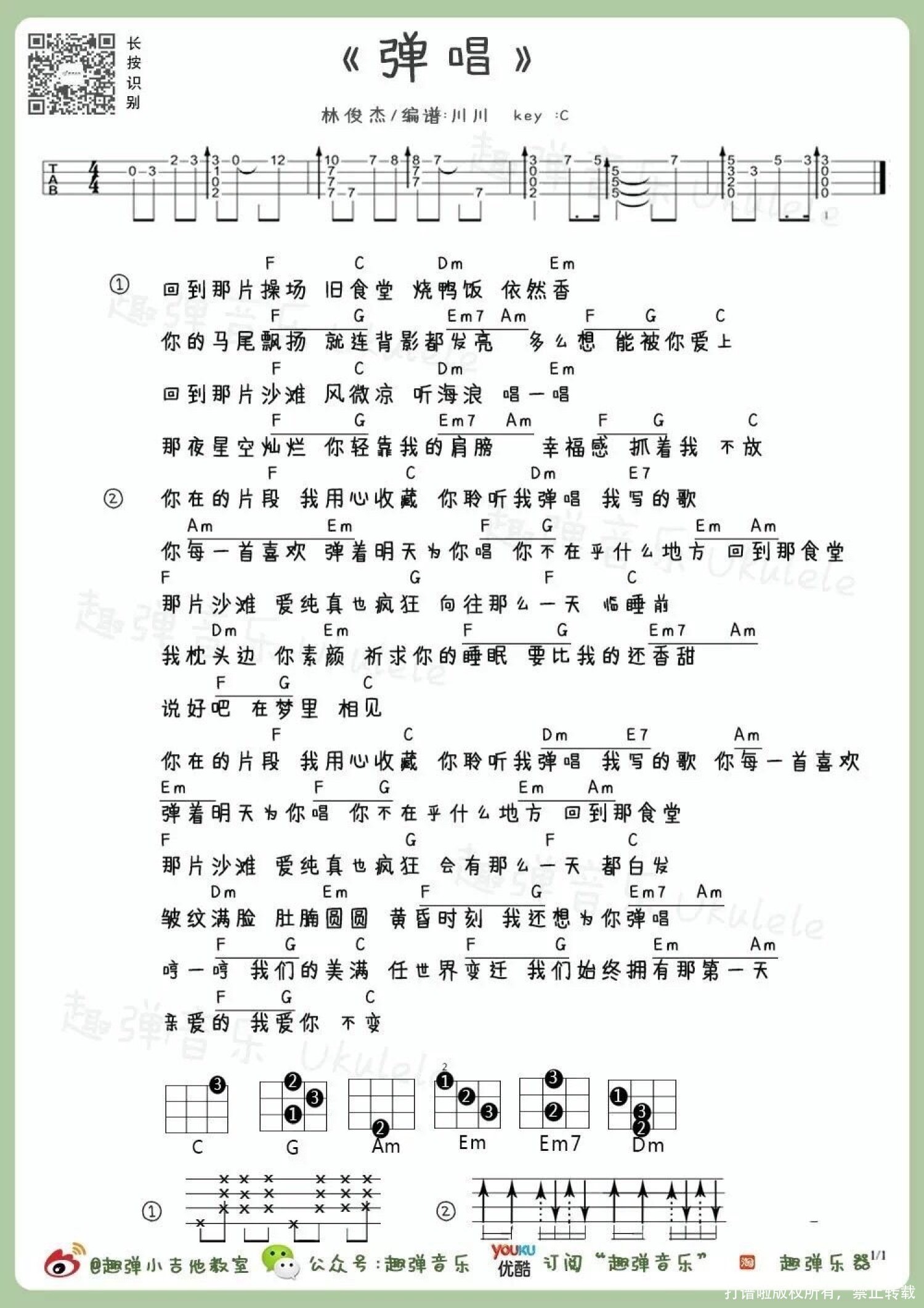 曲谱介绍: 林俊杰《弹唱》_C调尤克里里谱