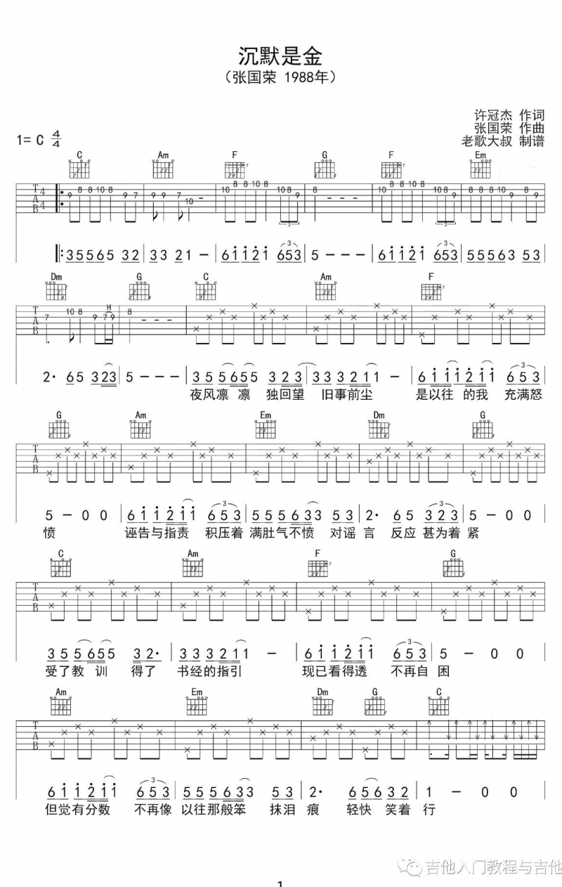当前位置:琴谱网>吉他弹唱>沉默是金