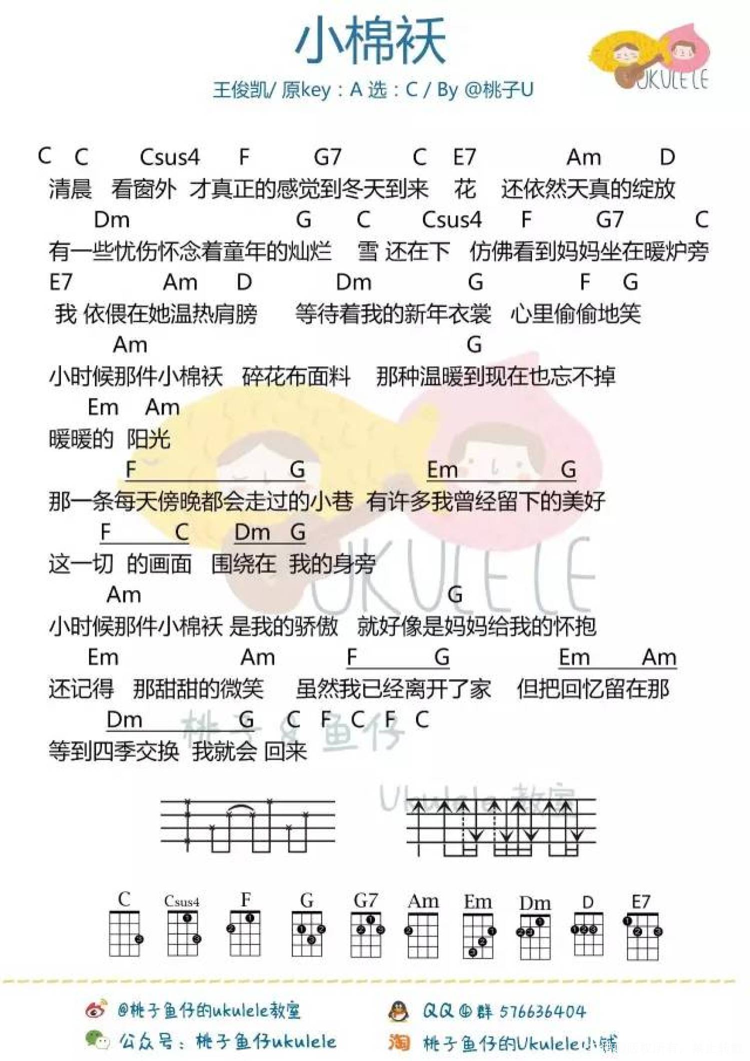 曲谱介绍: 王俊凯《小棉袄》_C调尤克里里谱