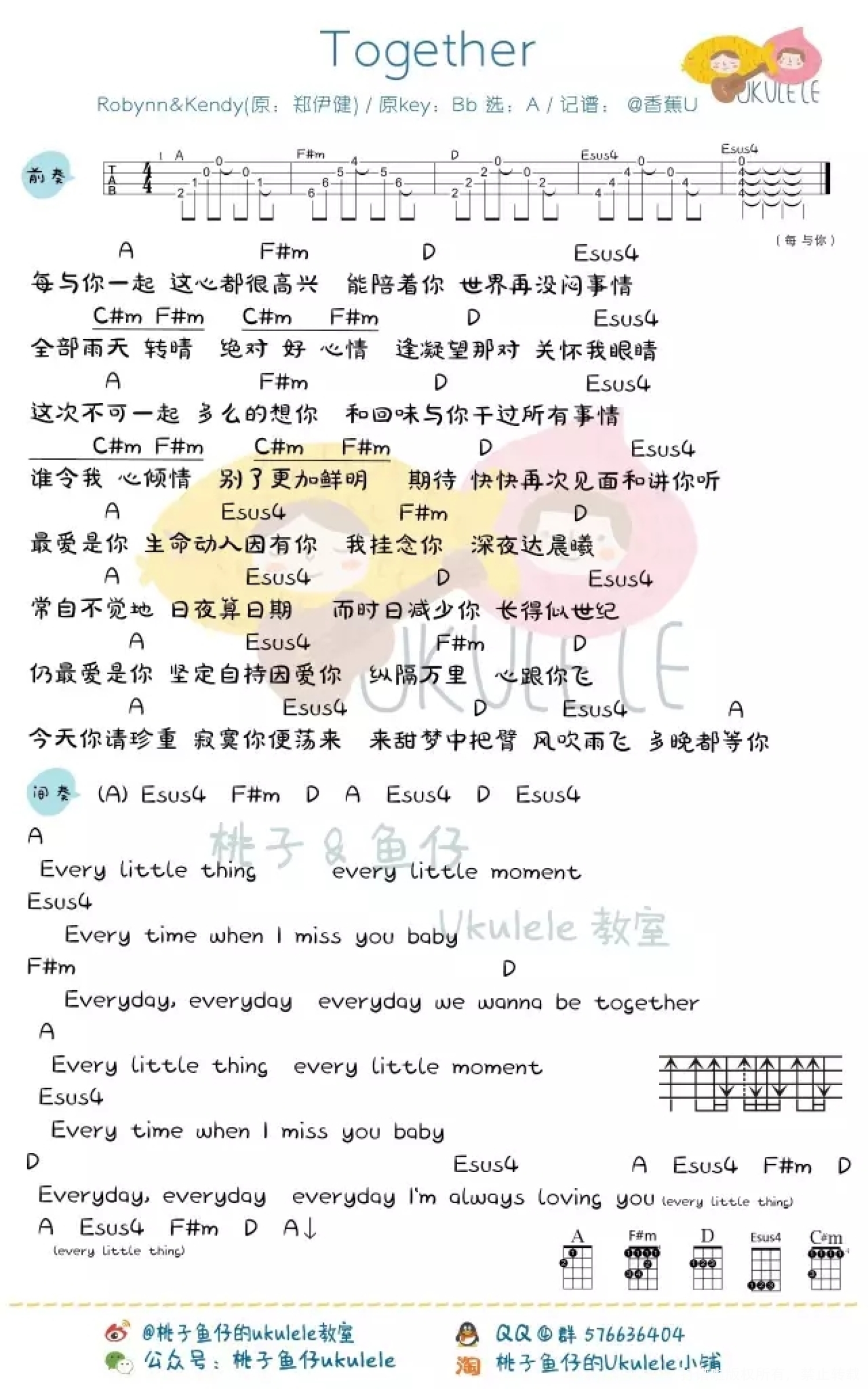 曲谱介绍: 郑伊健《Together》_A调尤克里里谱