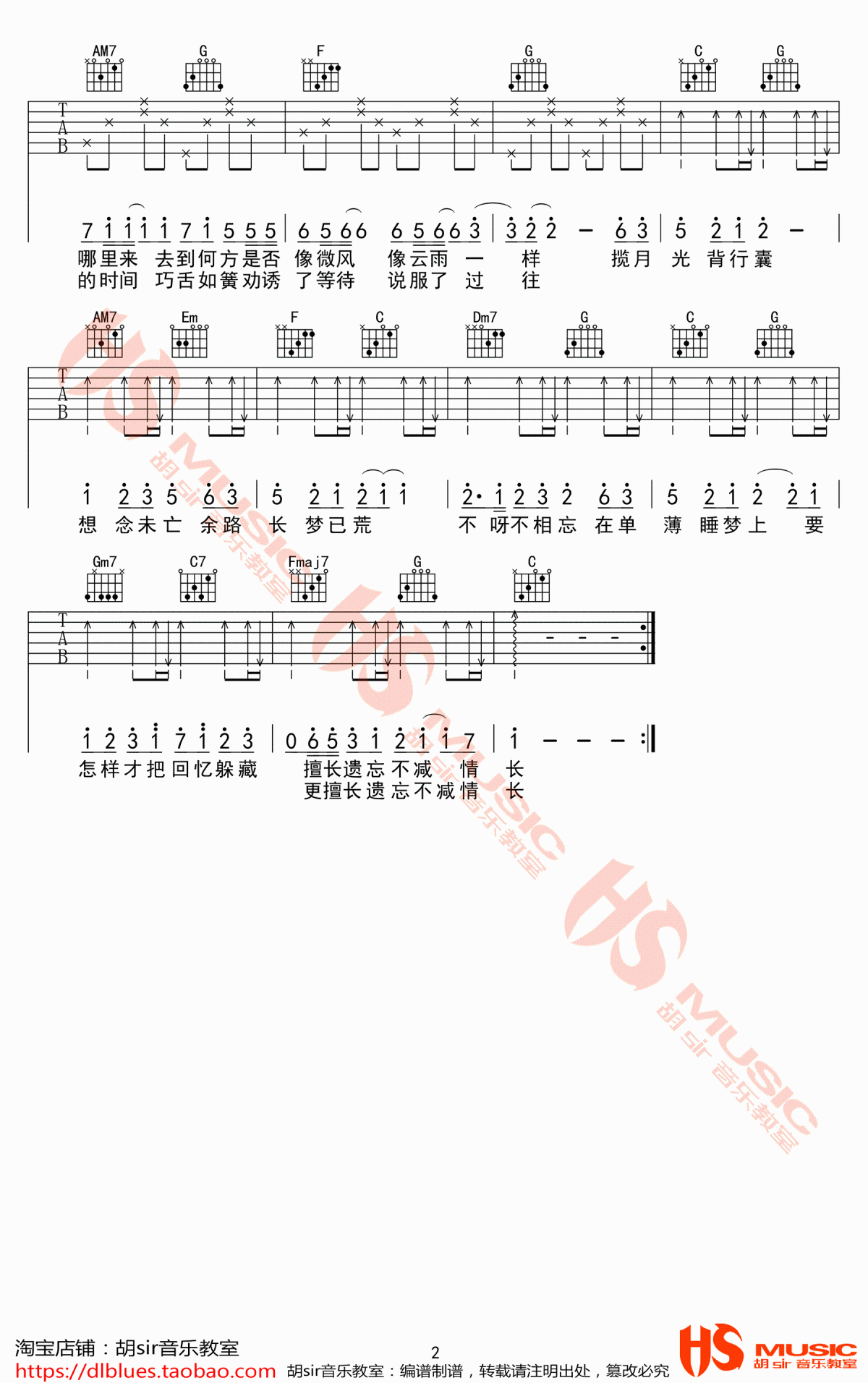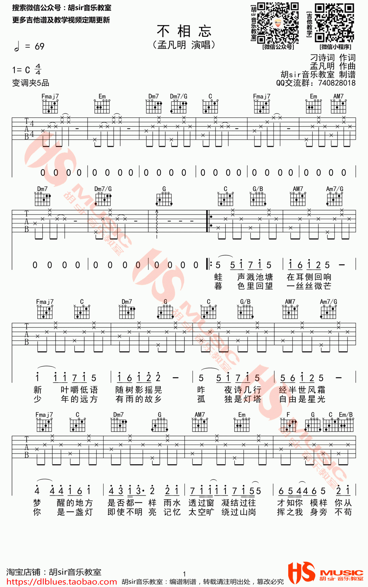 曲谱介绍: 孟凡明《不相忘》吉他谱,不相忘六线谱,C调指法编配,变调夹夹第五品。感谢您制作和推荐Husir音乐教室。