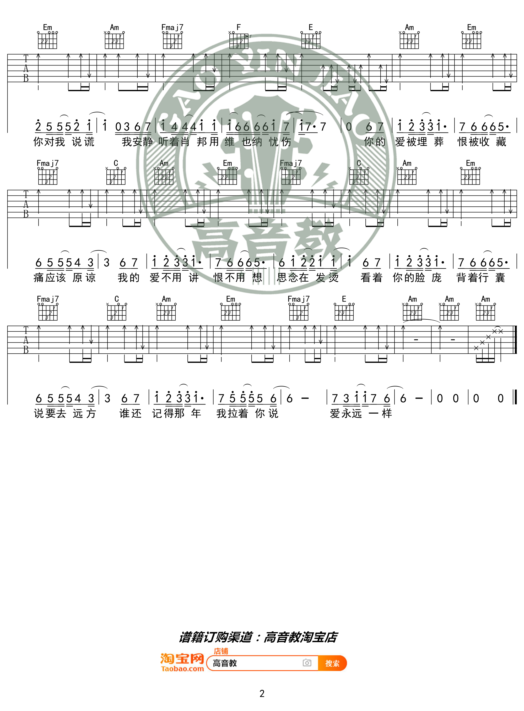 曲谱介绍: 《不分手的恋爱》吉他谱_汪苏泷_C调简单弹唱六线谱_高清图片谱分享,采用C调指法编配,演唱时夹变调夹2品。这首歌是当时流行的单曲。每个人都想谈恋爱而不分手,这正是我们所期望的。这个版本的音乐来自男高音教学,它都是简单的和弦。