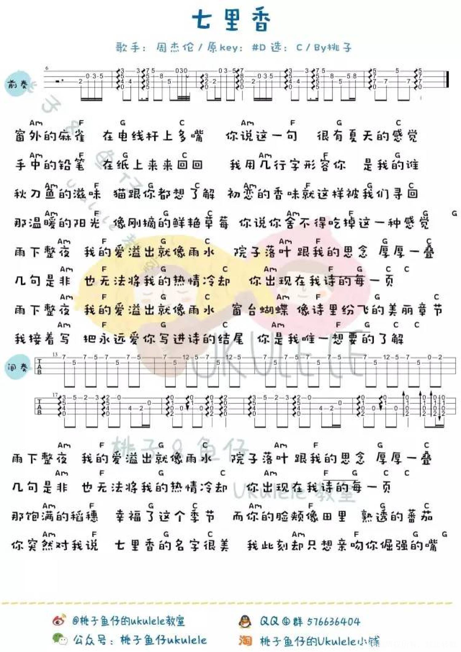 曲谱介绍: 周杰伦《七里香》尤克里里谱,共有4张高清图谱。