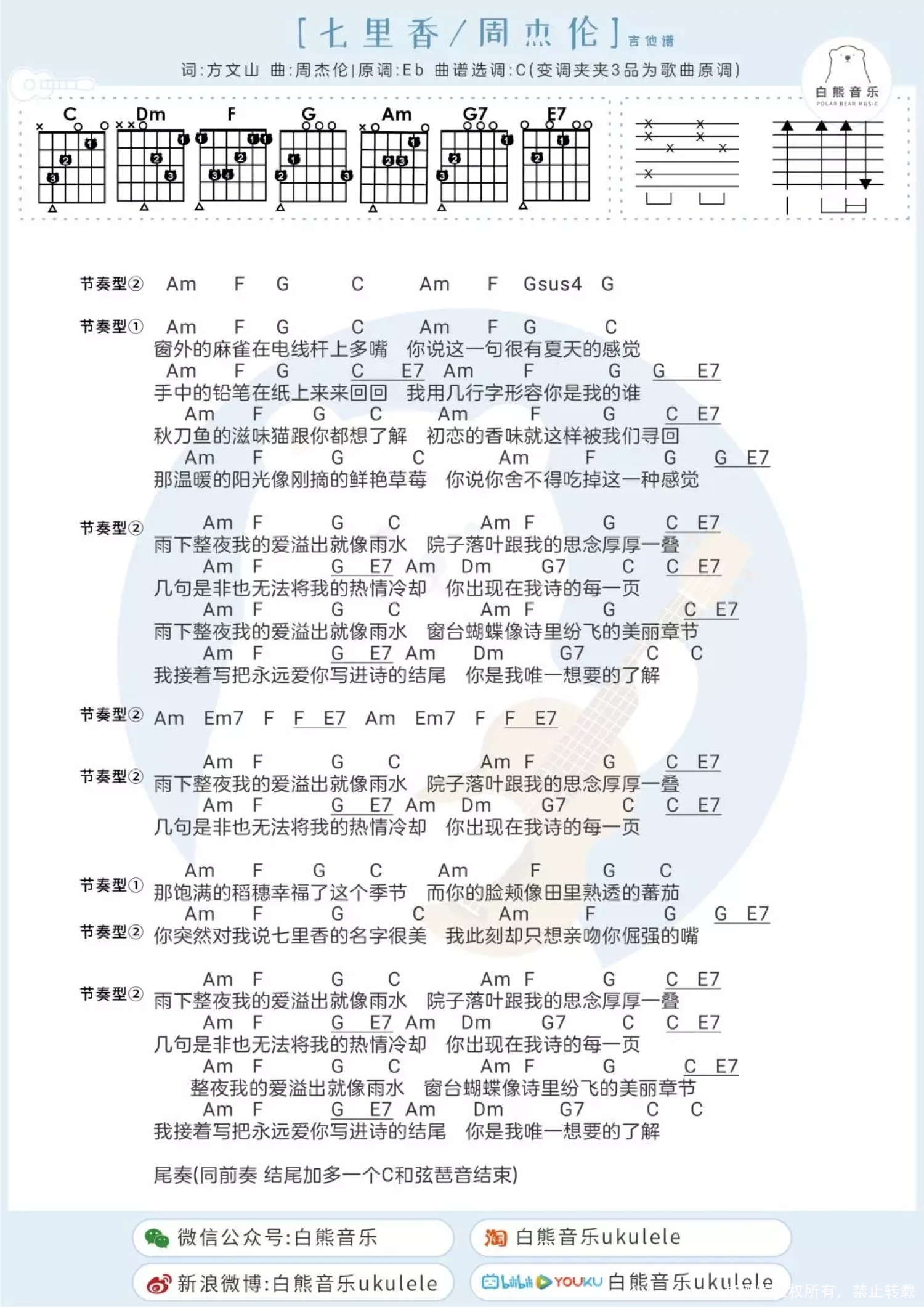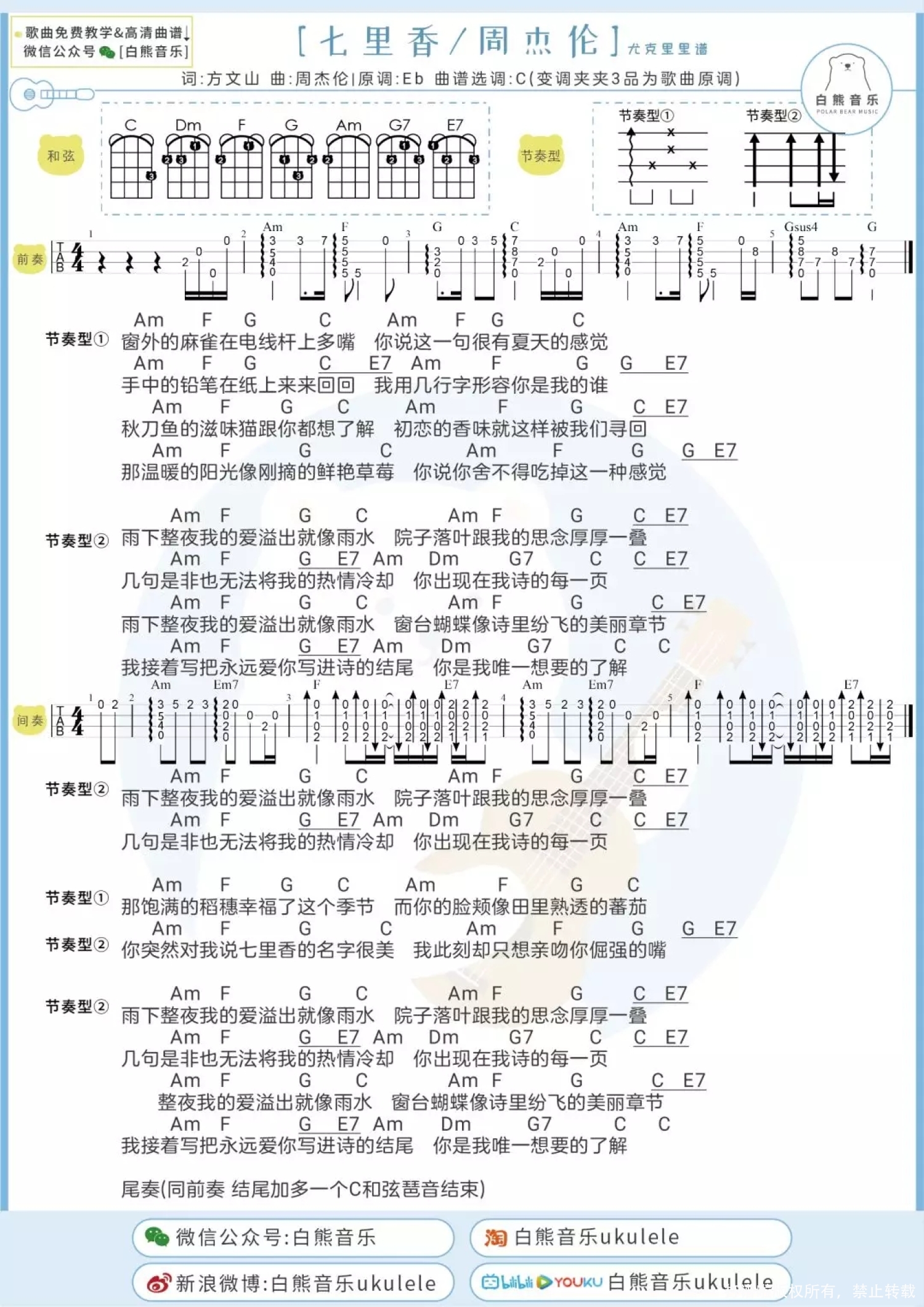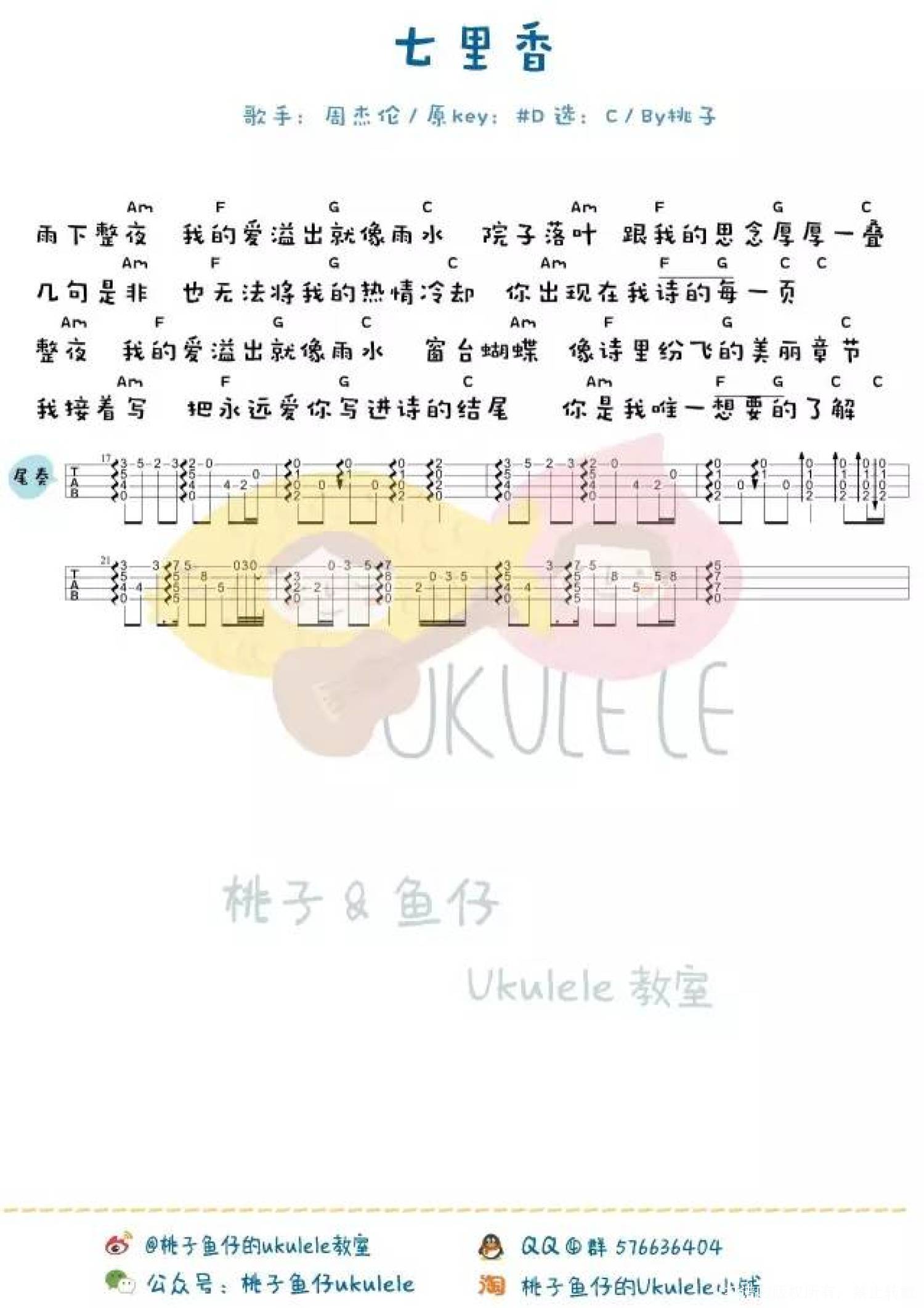 七里香尤克里里谱 - 周杰伦