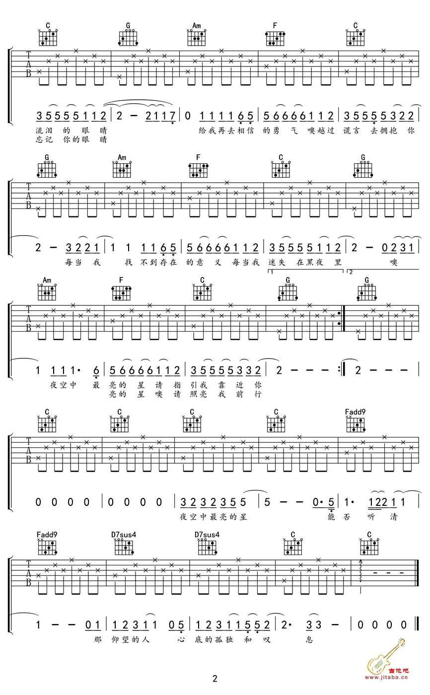 当前位置:琴谱网>吉他弹唱>夜空中最亮的星