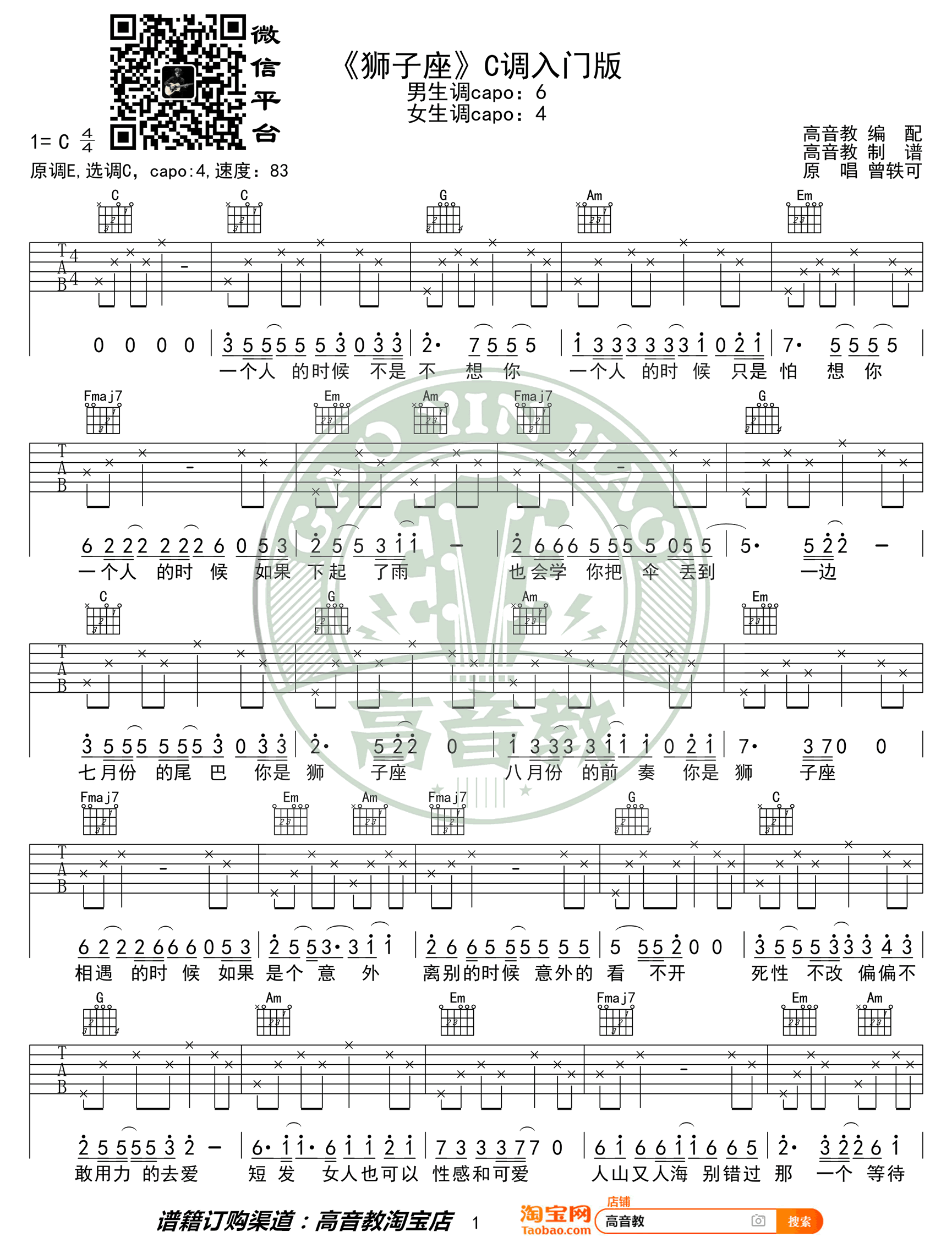 狮子座吉他谱 - 曾轶可 - C调吉他弹唱谱