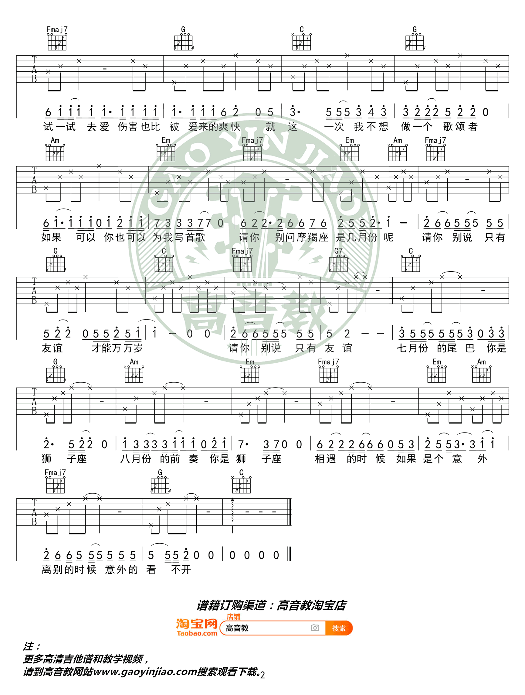 当前位置:琴谱网>吉他弹唱>狮子座