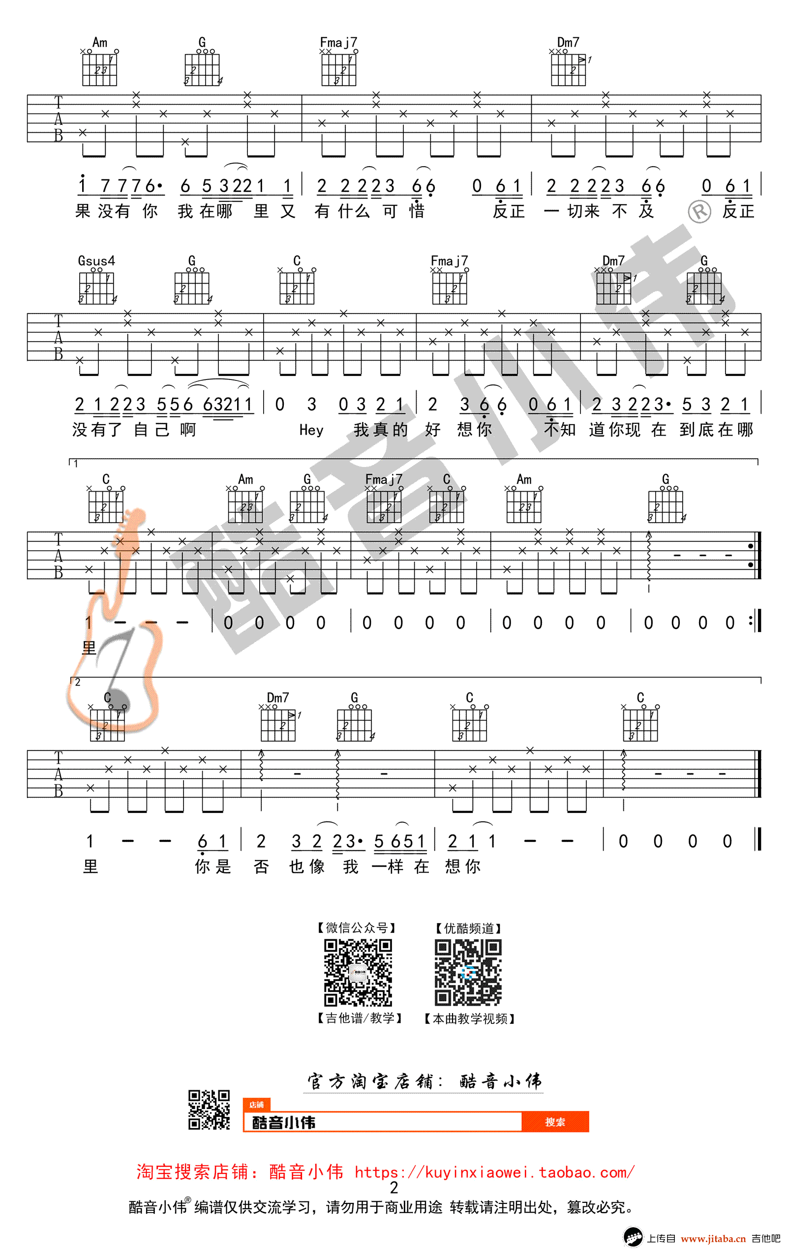 当前位置:琴谱网>吉他弹唱>如果没有你