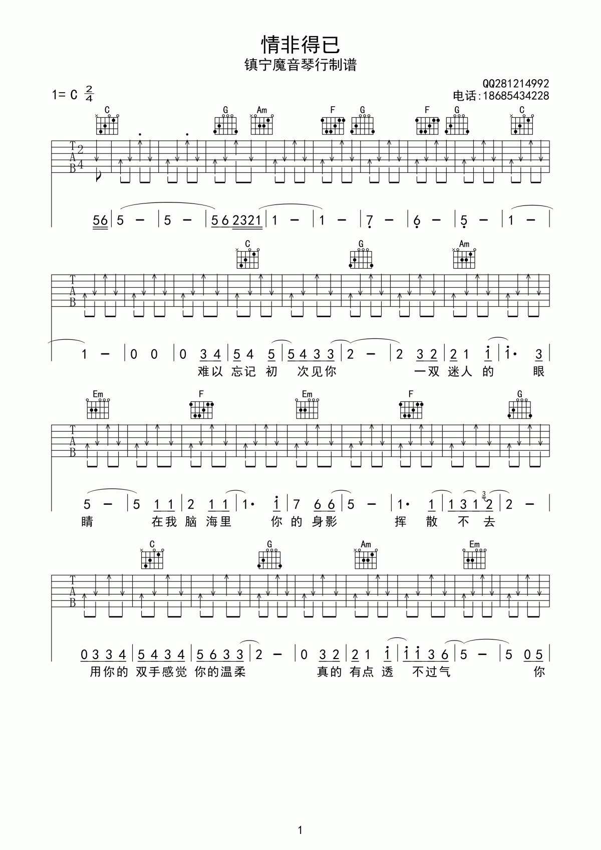 曲谱介绍: 情非得已吉他谱是根据庾澄庆的一首歌曲编配的吉他谱,采用C调指法编配。感谢魔音琴行编配该吉他谱,琴谱网整理上传。爱上你是我情非得已一首经典的老歌,旋律还是那么的好听,歌词也写的很好。这首歌曲和弦编配简单,对爱的人每个人都没有自控能力。所以情非得已是对爱情执着的最好诠释。喜欢老歌的朋友可以拿起吉他再次弹奏这首经典。
